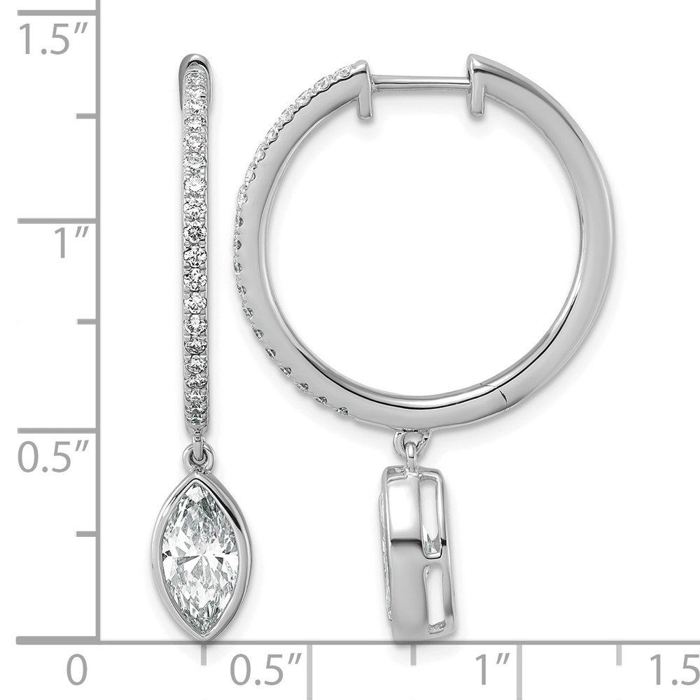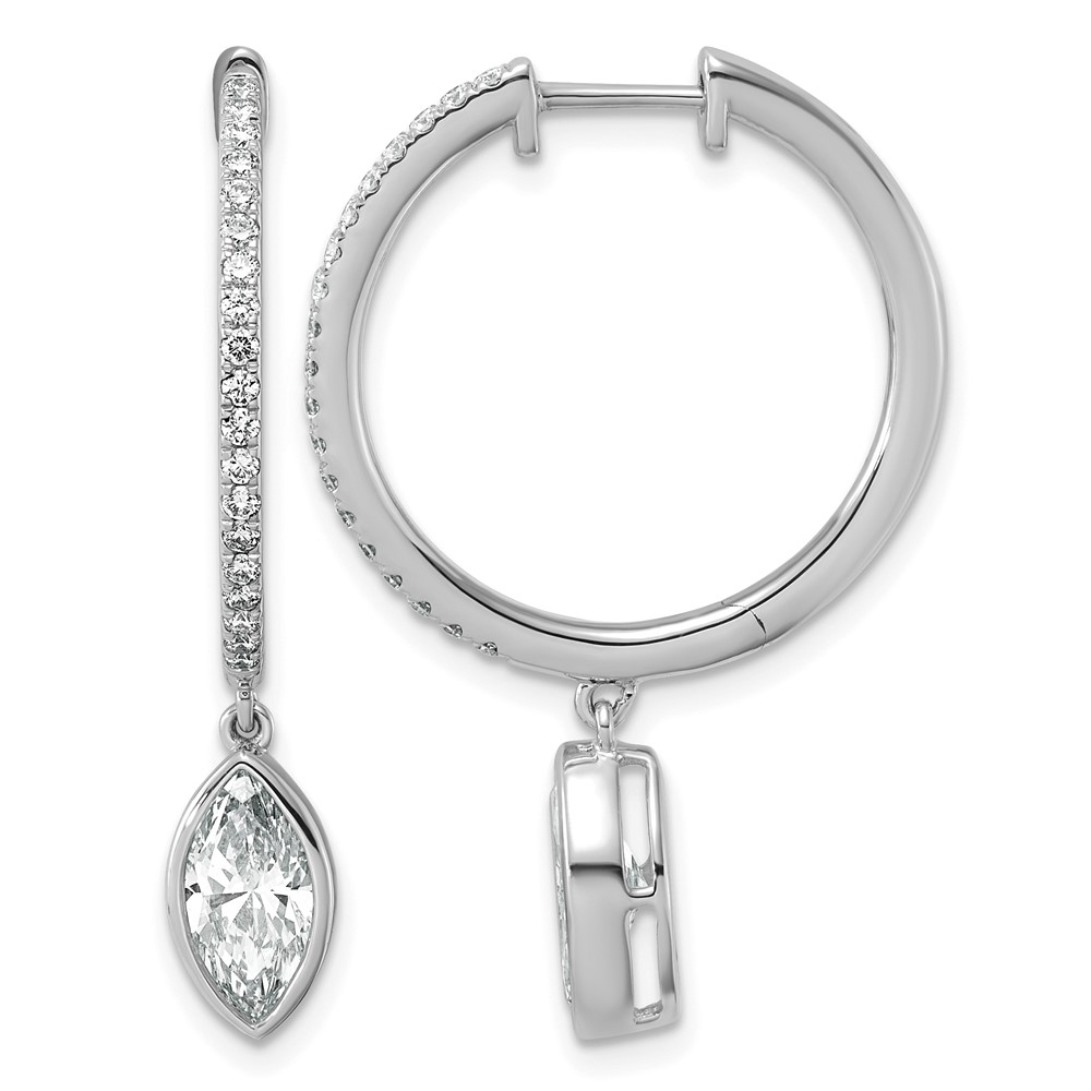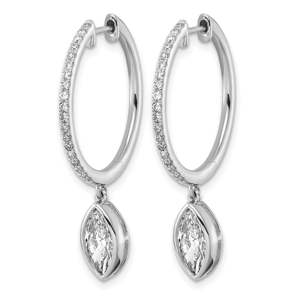 True Origin 14k White Gold 2 3/8 carat Lab Grown Diamond VS+ F+ Complete Marquise Bezel-Set Dangle In/Out Hoop Earrings