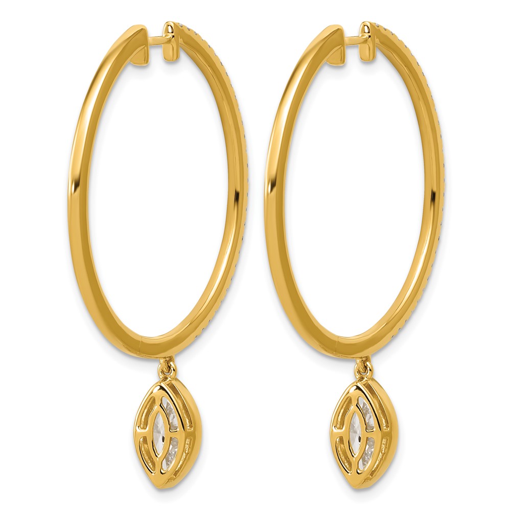 True Origin 14k Yellow Gold 2 5/8 carat Lab Grown Diamond VS+ F+ Complete Marquise Bezel-Set Dangle In/Out Hoop Earrings