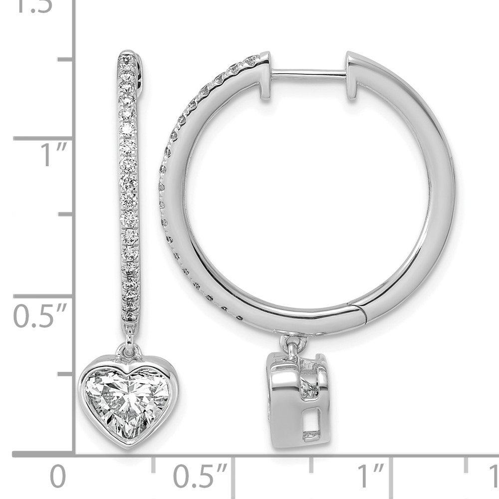 True Origin 14k White Gold 2 3/8 carat Lab Grown Diamond VS+ F+ Complete Heart Bezel-Set Dangle In/Out Hoop Earrings