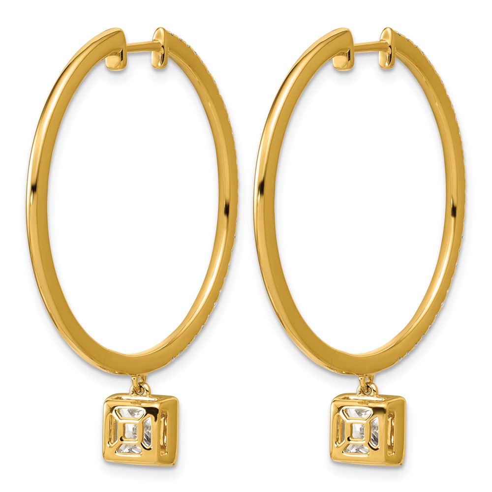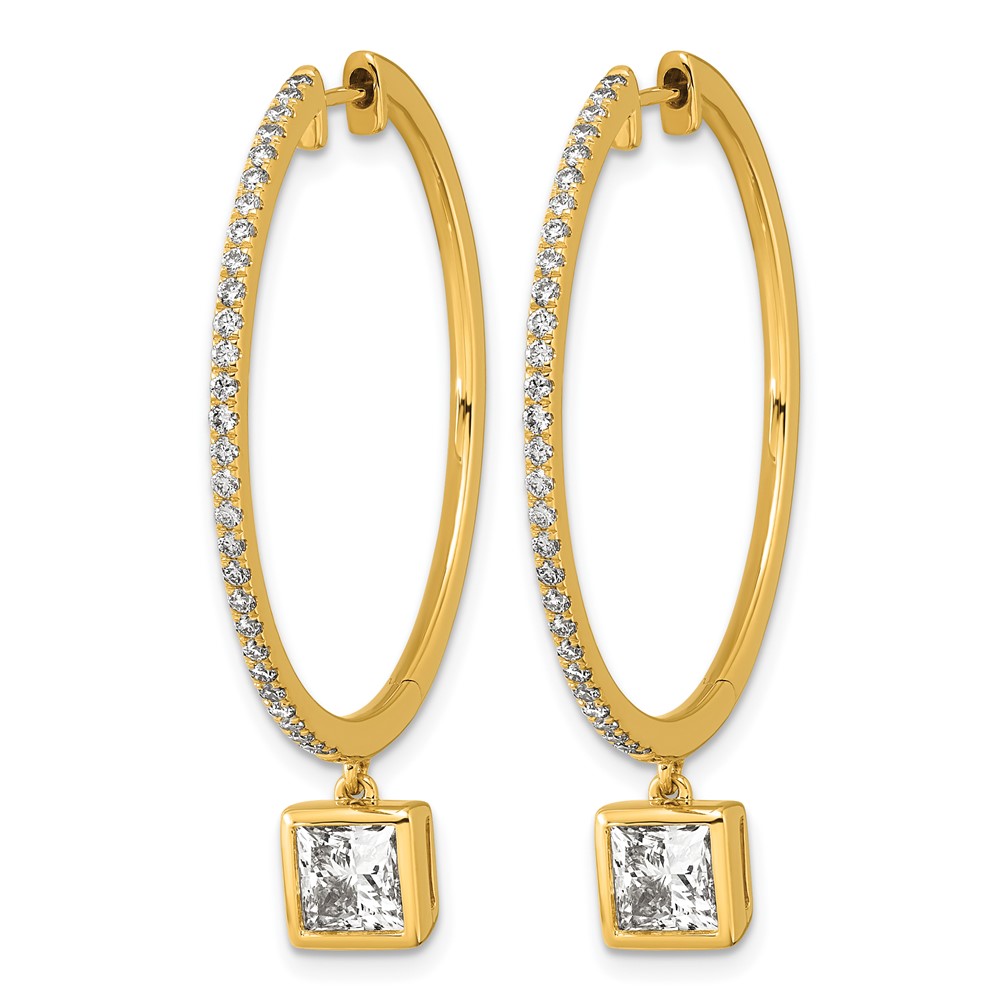 True Origin 14k Yellow Gold 2 5/8 carat Lab Grown Diamond VS+ F+ Complete Square Bezel-Set Dangle In/Out Hoop Earrings