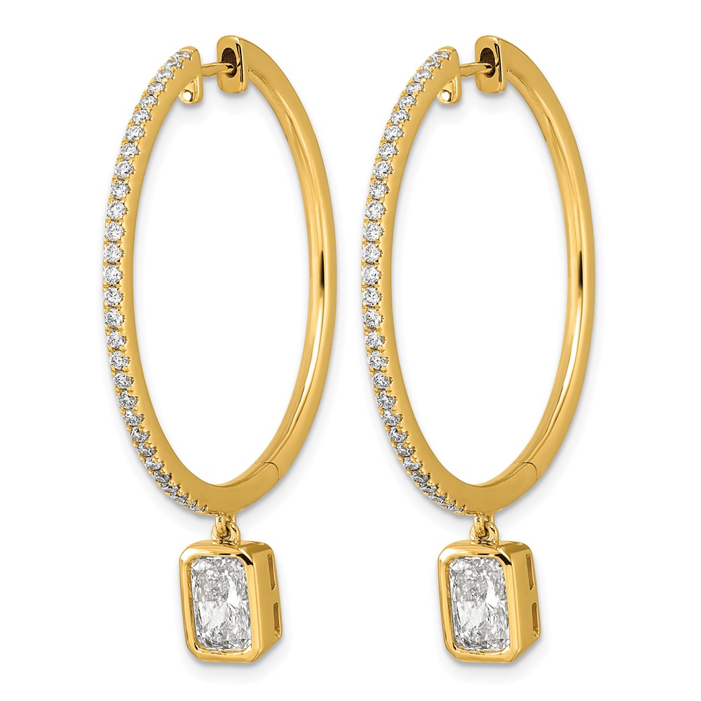 True Origin 14k Yellow Gold 2 5/8 carat Lab Grown Diamond VS+ F+ Complete Radiant Bezel-Set Dangle In/Out Hoop Earrings