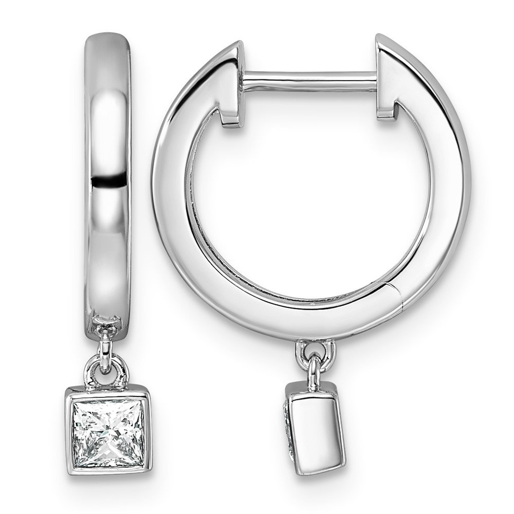 14kw 1/3ct LabGrown Dia VS+ F+ Dangle Princess Bezel Comp Hoop Earrings