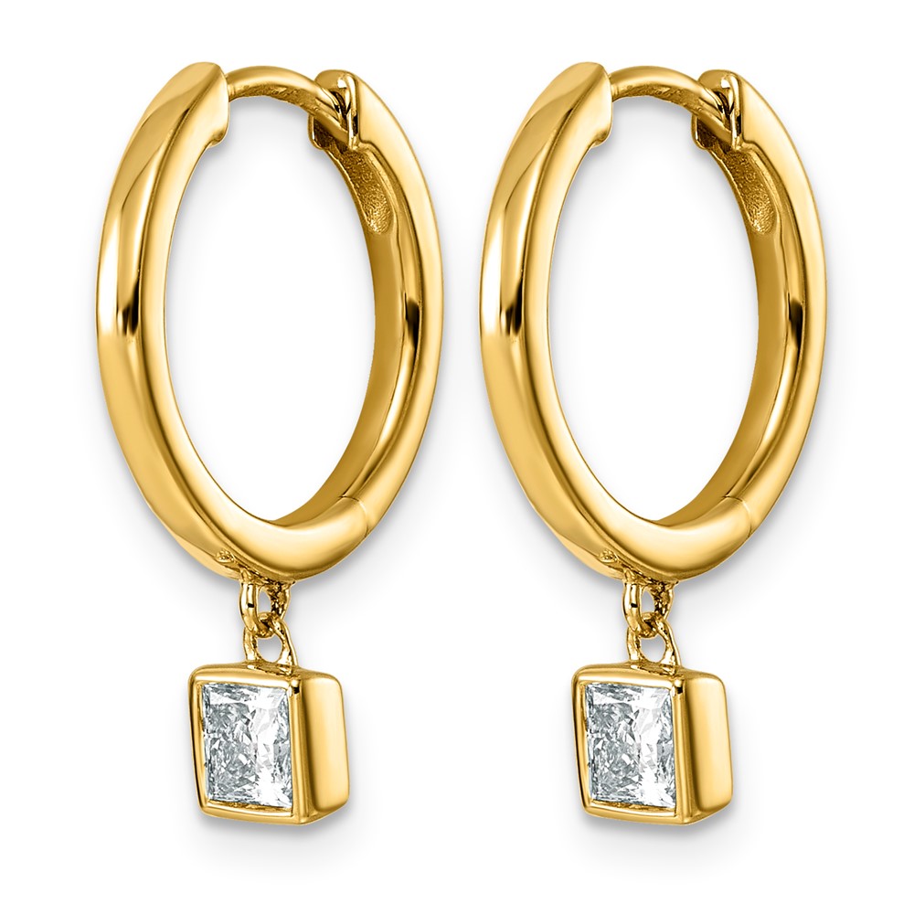 14ky 1/2ct LabGrown Dia VS+ F+ Dangle Princess Bezel Comp Hoop Earrings
