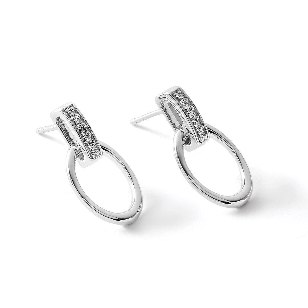 White Ice Sterling Silver Rhodium-plated Open Oval Diamond Post Dangle Earrings
