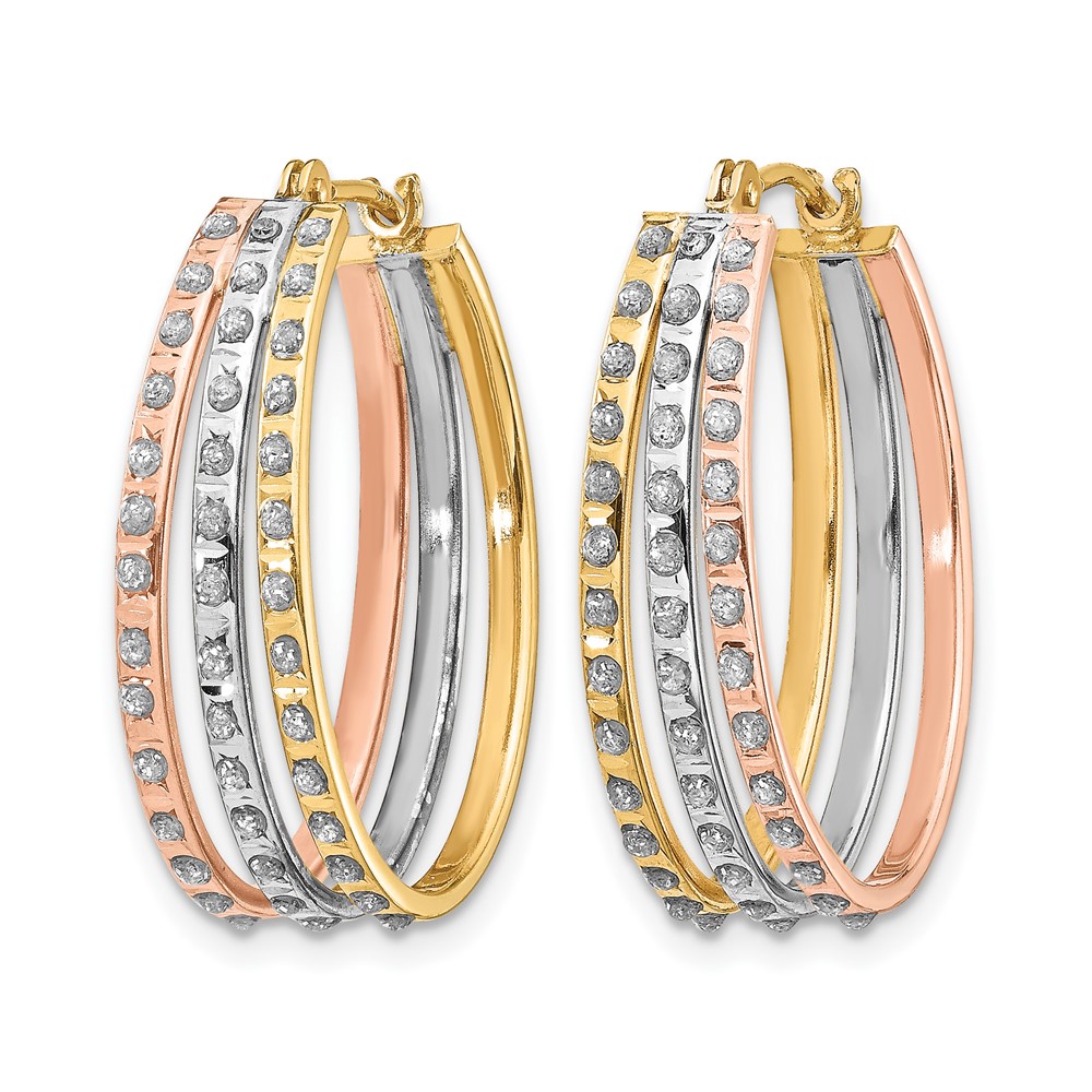 14k Tri-color Diamond Fascination Diamond Dust/Accent Oval 3-Hoop Earrings
