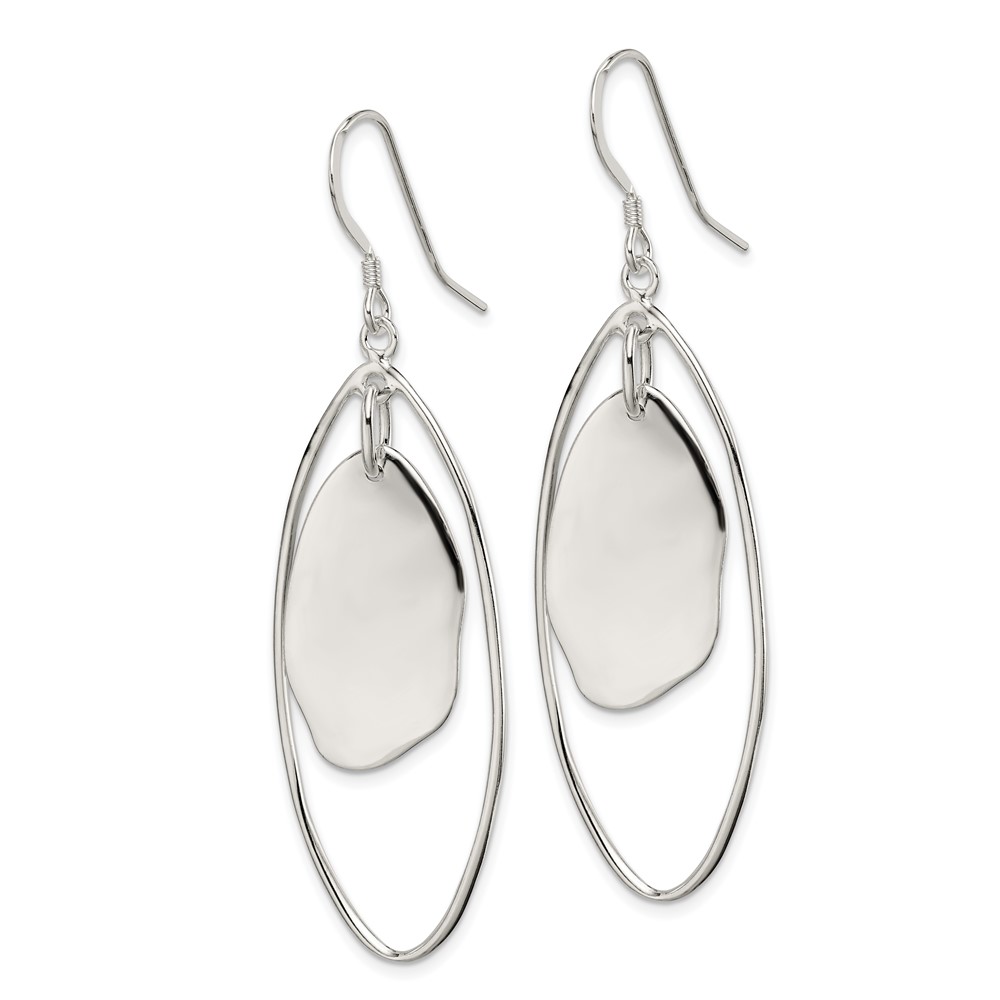 Sterling Silver Polished Fancy Oval Dangle Earrings