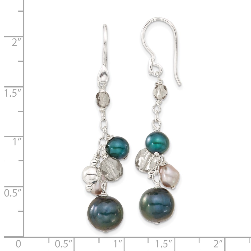 Sterling Silver Multicolor Simulated Pearl & Glass Bead Cluster Dangle Earrings