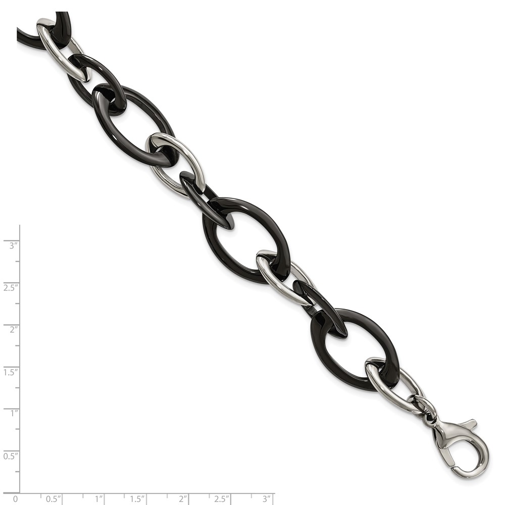 Chisel Stainless Steel Polished with Black Ceramic 8 inch Open Link Bracelet