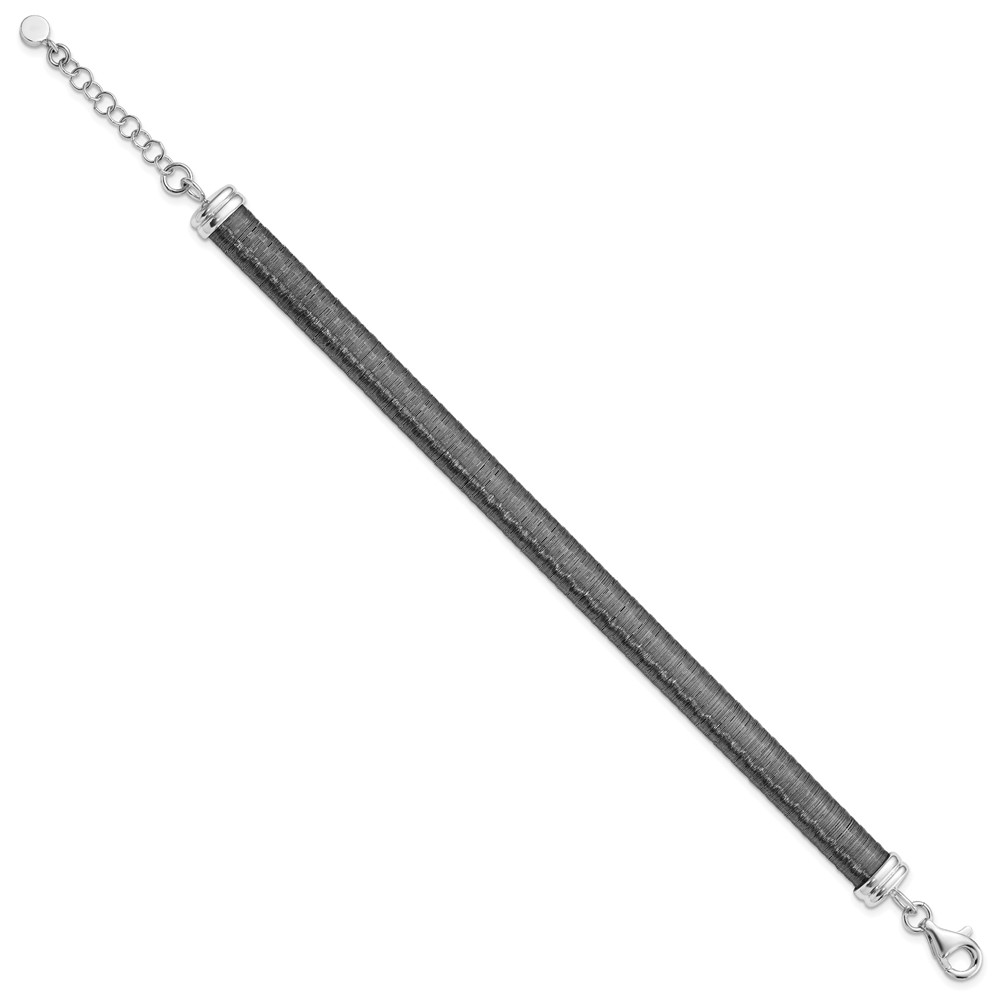 Sterling Silver Black-plated Wire Wrapped w/ 1in ext Bracelet
