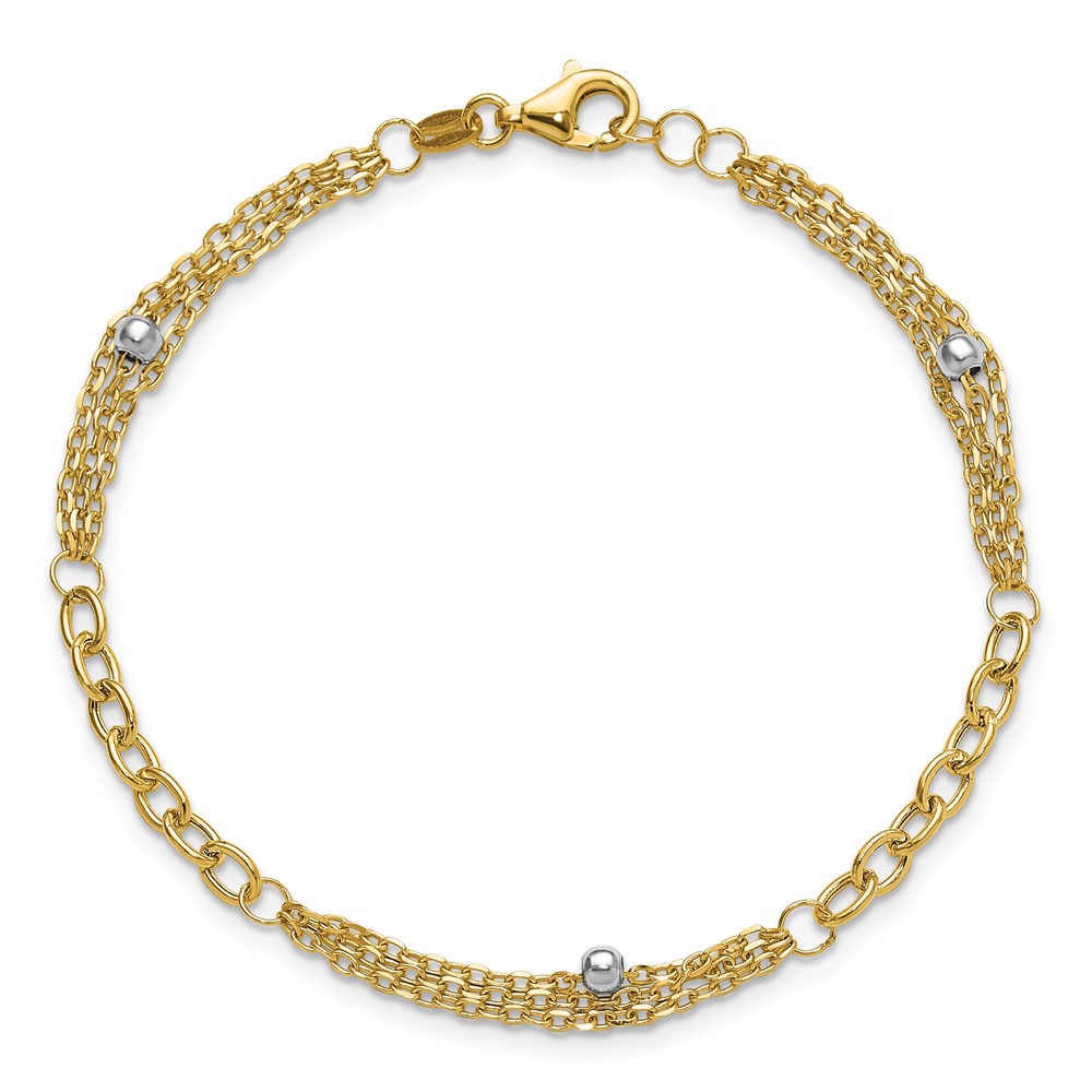 Leslie's 14K w/White Rhodium Fancy Link w/.25in ext. Bracelet