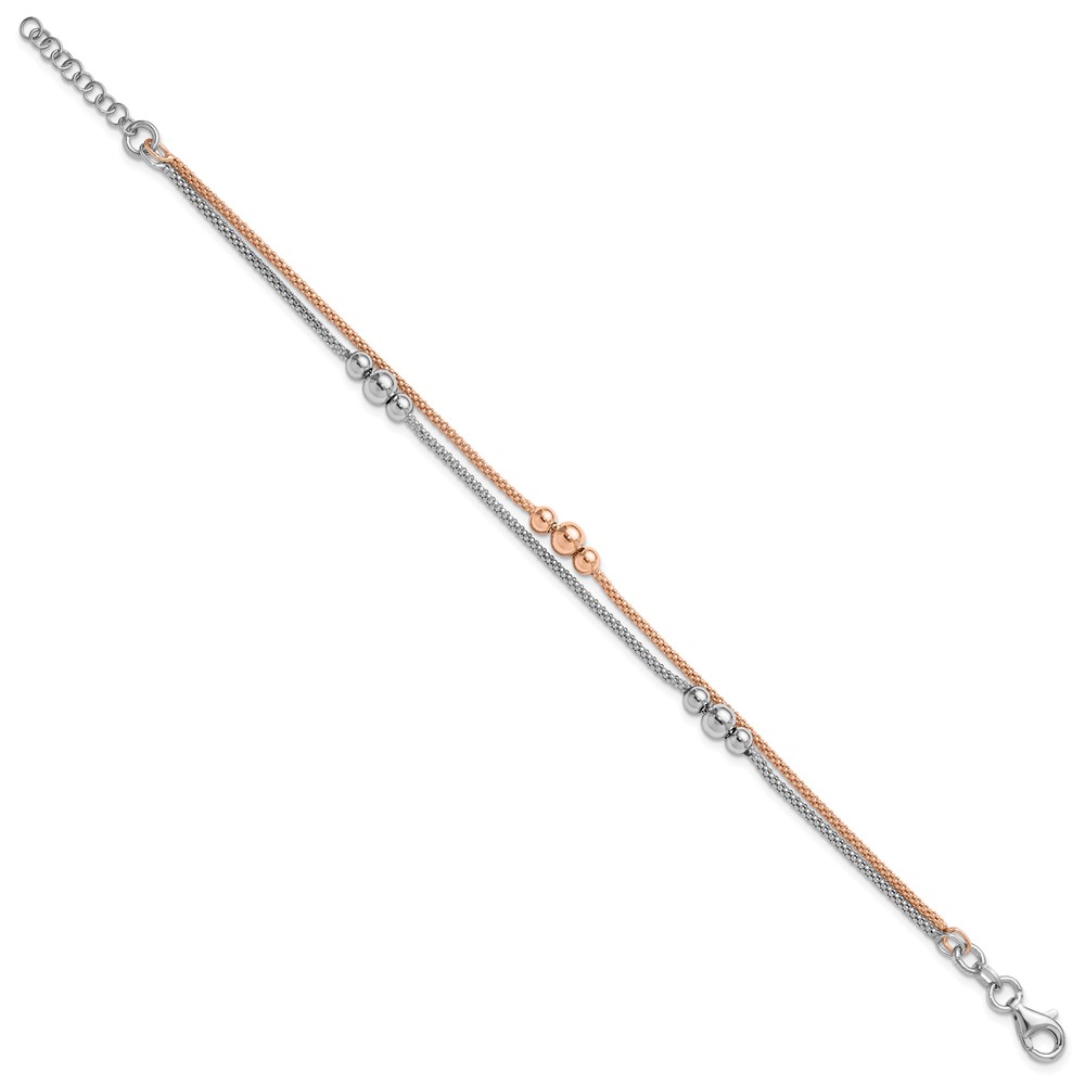 Leslie's Sterling Silver Rhodium and Rose-tone w/1in ext. Bracelet
