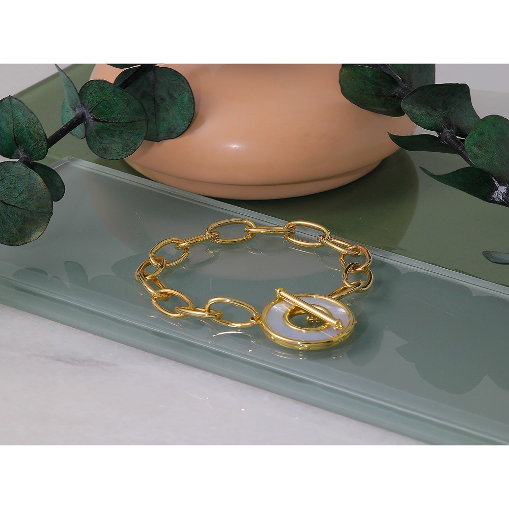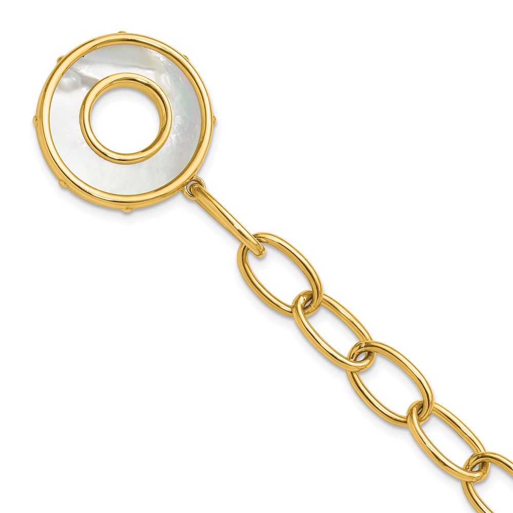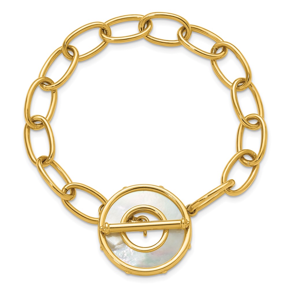 Herco 14K Polished Mother of Pearl Disc Oval Link Toggle Bracelet