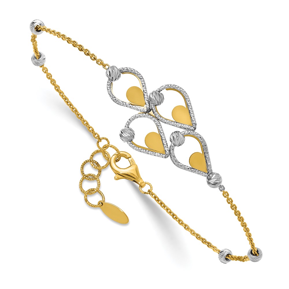Leslie's 14K TT Polished / Dia-cut Fancy Bracelet w/.5in ext. Bracelet