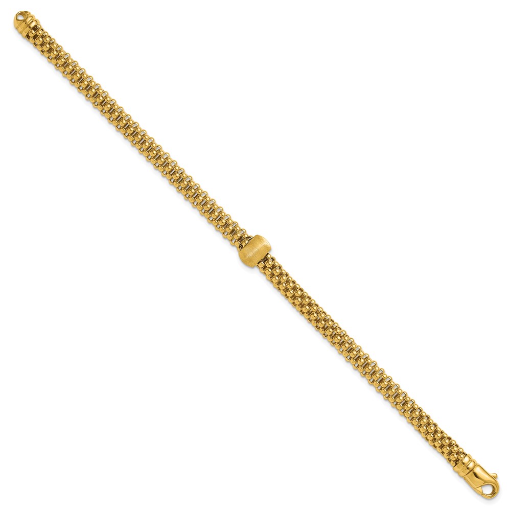 Leslie's 14K Polished and Brushed Bead Popcorn Mesh Bracelet