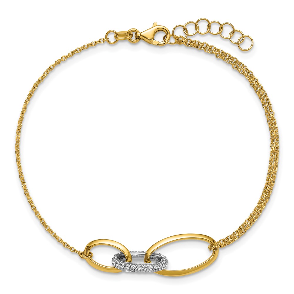 Leslie's 14K Two-tone Polished Fancy CZ Ovals w/.75in Ext. Bracelet