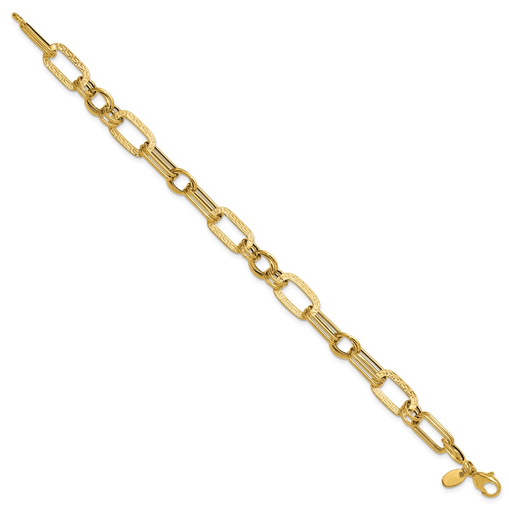 Leslie's 14K Polished and Textured Fancy Greek Key Link Bracelet