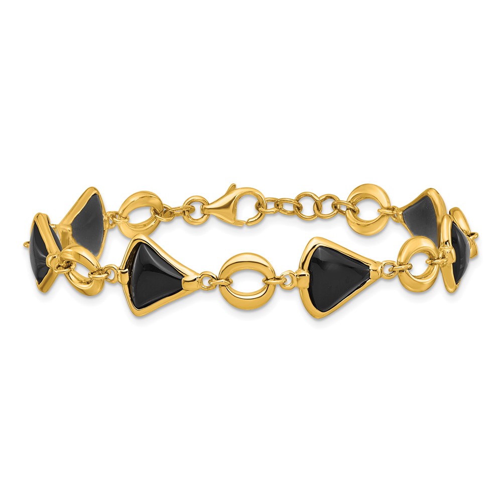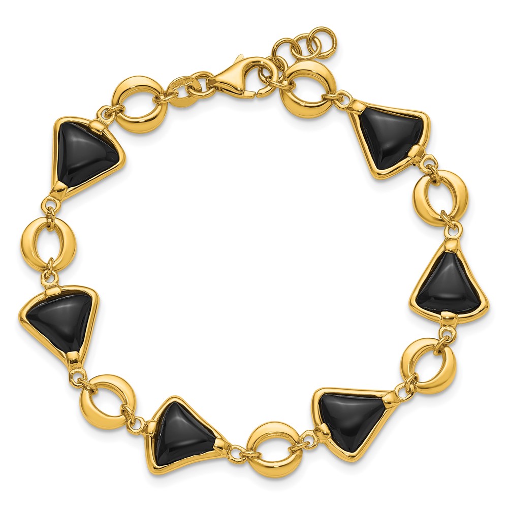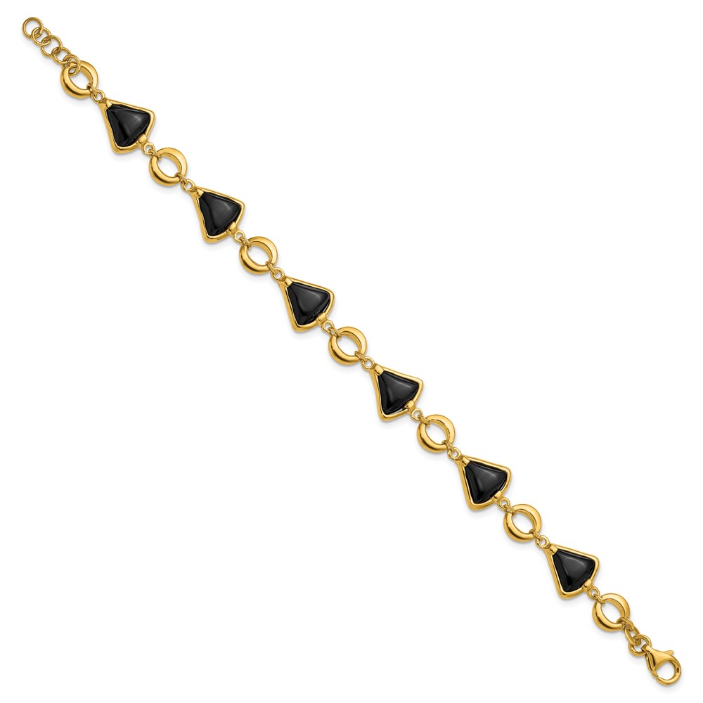 Herco 14K Polished Triangular Onyx and Circle Link 7 Inch with .5 Inch Extension Bracelet