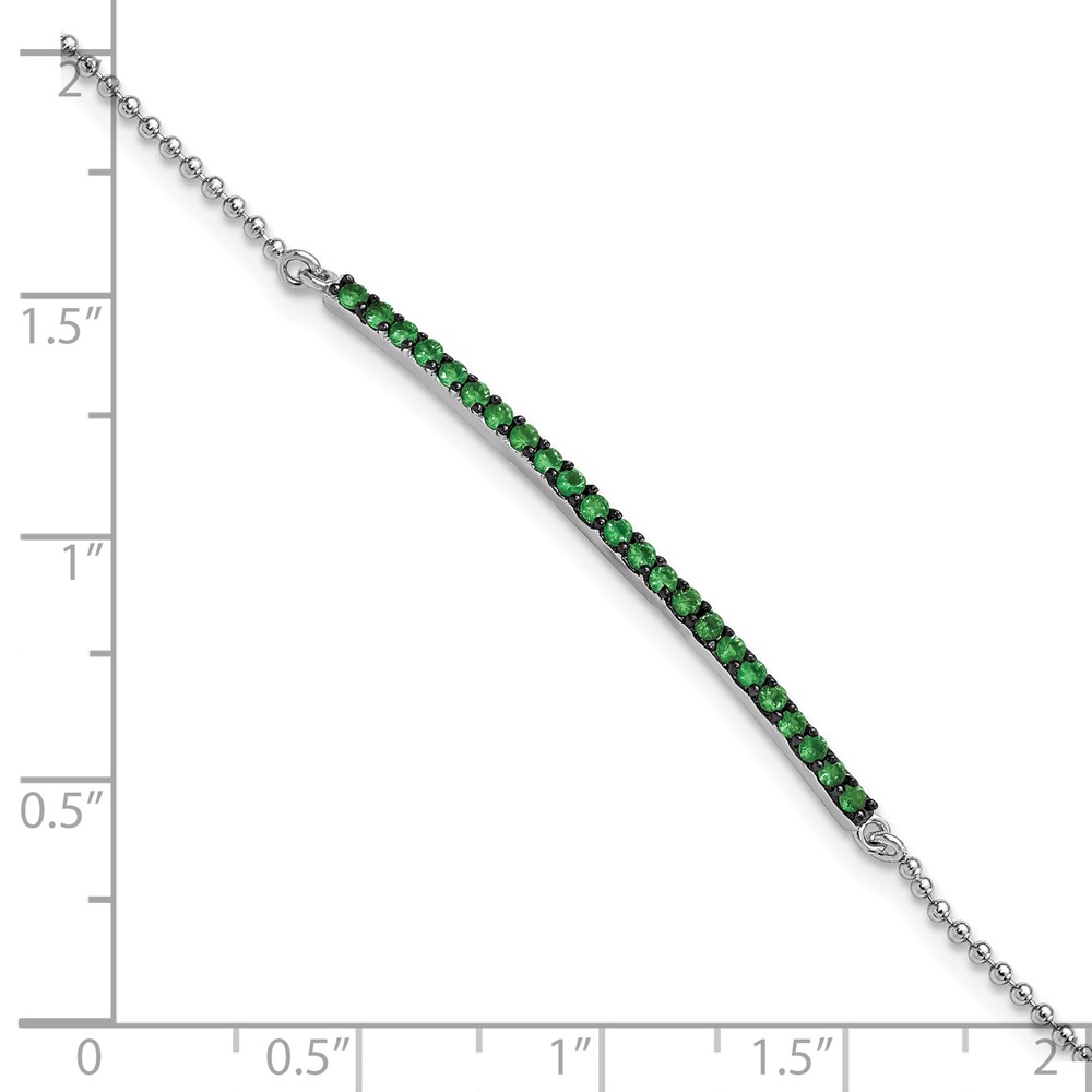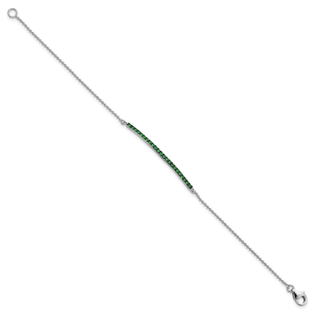 Cheryl M Sterling Silver Hematite and Rhodium-plated Polished and Beaded Green Glass Bar 7 Inch Bracelet