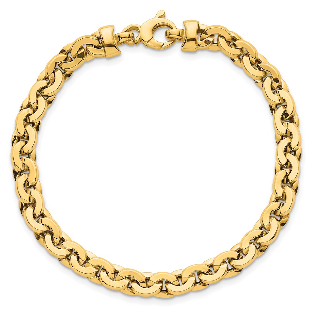 14K Polished 5.75mm Fancy Cable Link 7.5 Inch Bracelet