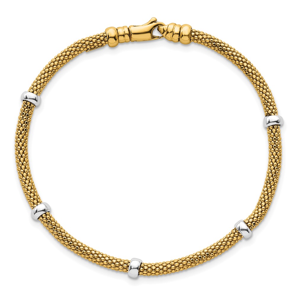 14k Two-tone Polished 7.5mm Fancy Mesh With Bead 7.25 inch Bracelet