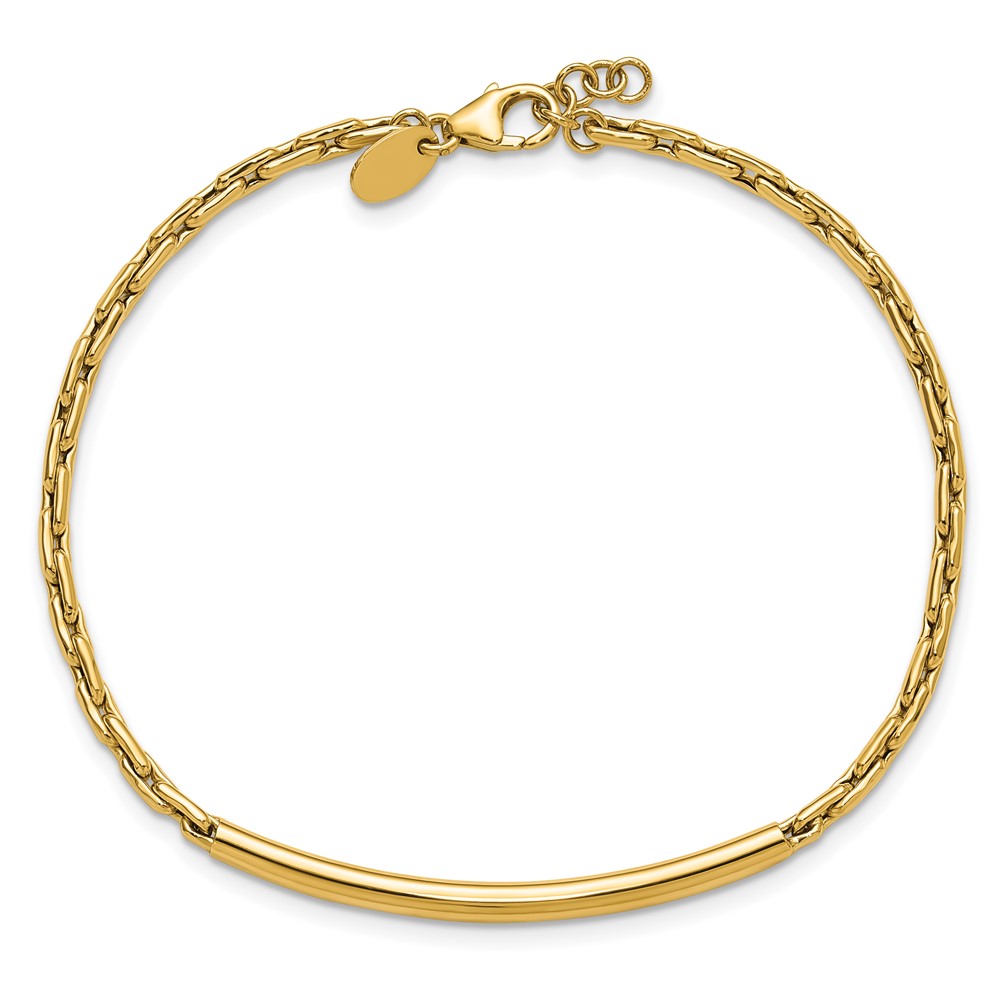 Leslie's 14K Polished / Diamond-cut Bar Double Chain w/.75in ext. Bracelet