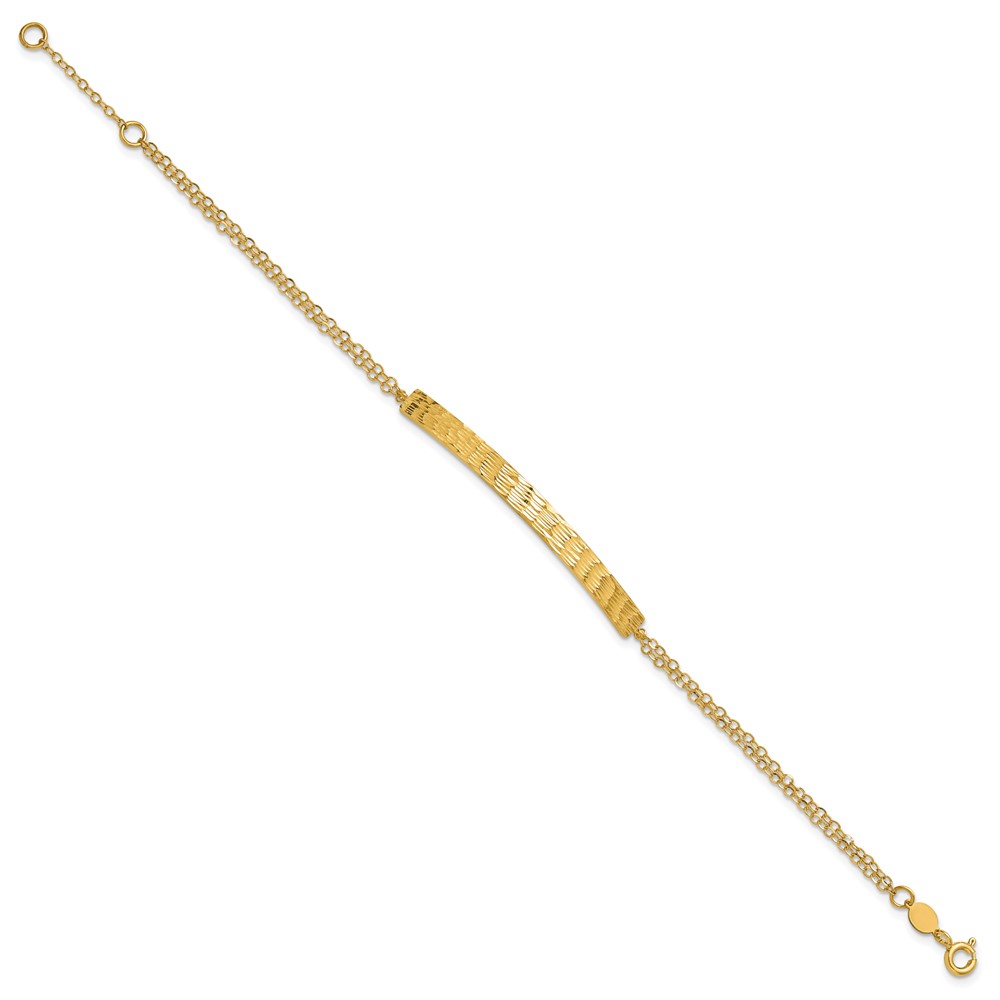 Leslie's 14K Polished / Diamond-cut Bar Double Chain w/.75in ext. Bracelet