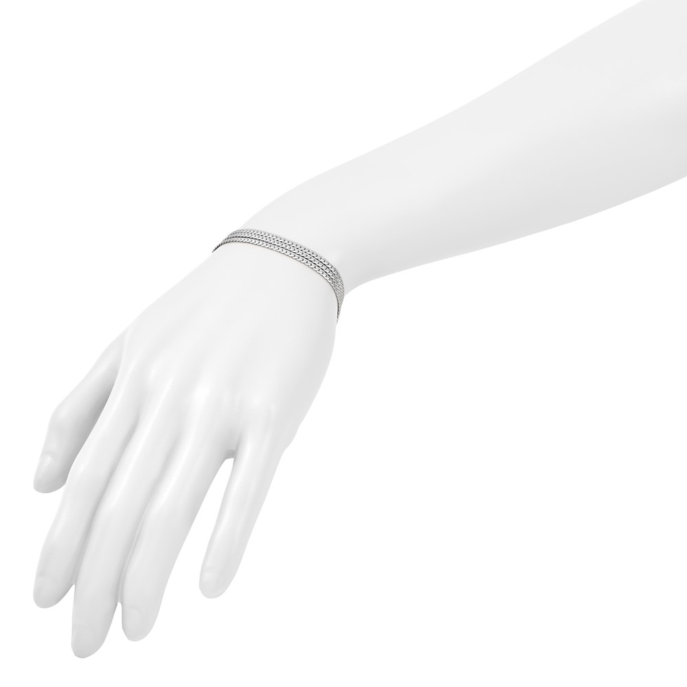 Leslie's Sterling Silver RH-Plated Pol. Fancy 3-strand w/1in ext. Bracelet