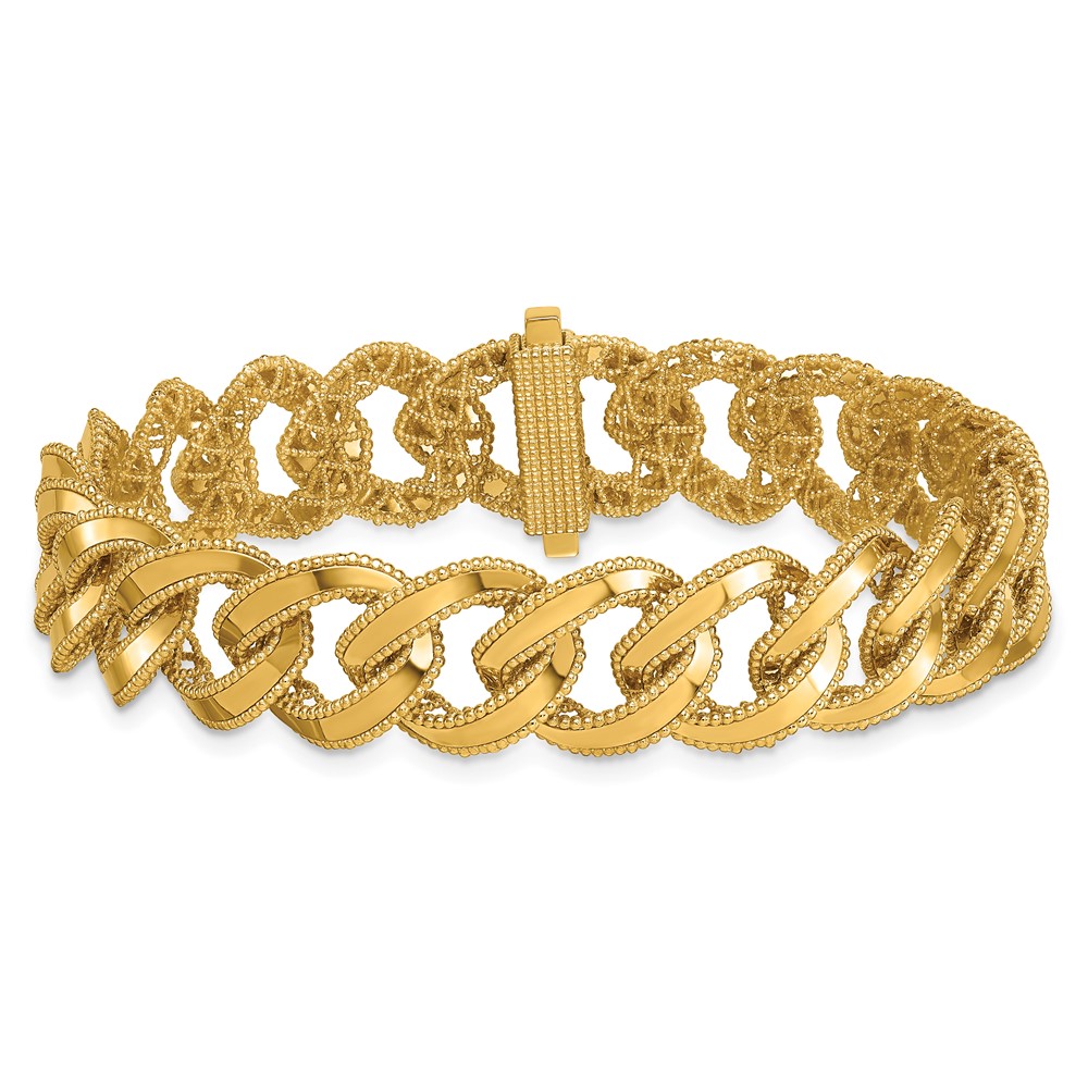 Herco 14k Polished and Textured Fancy Link 7 Inch Bracelet