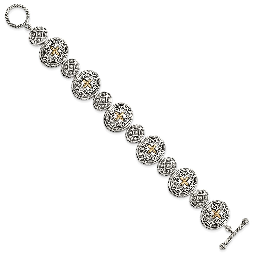 Shey Couture Sterling Silver with 14K Accent 8 Inch Antiqued Toggle Bracelet