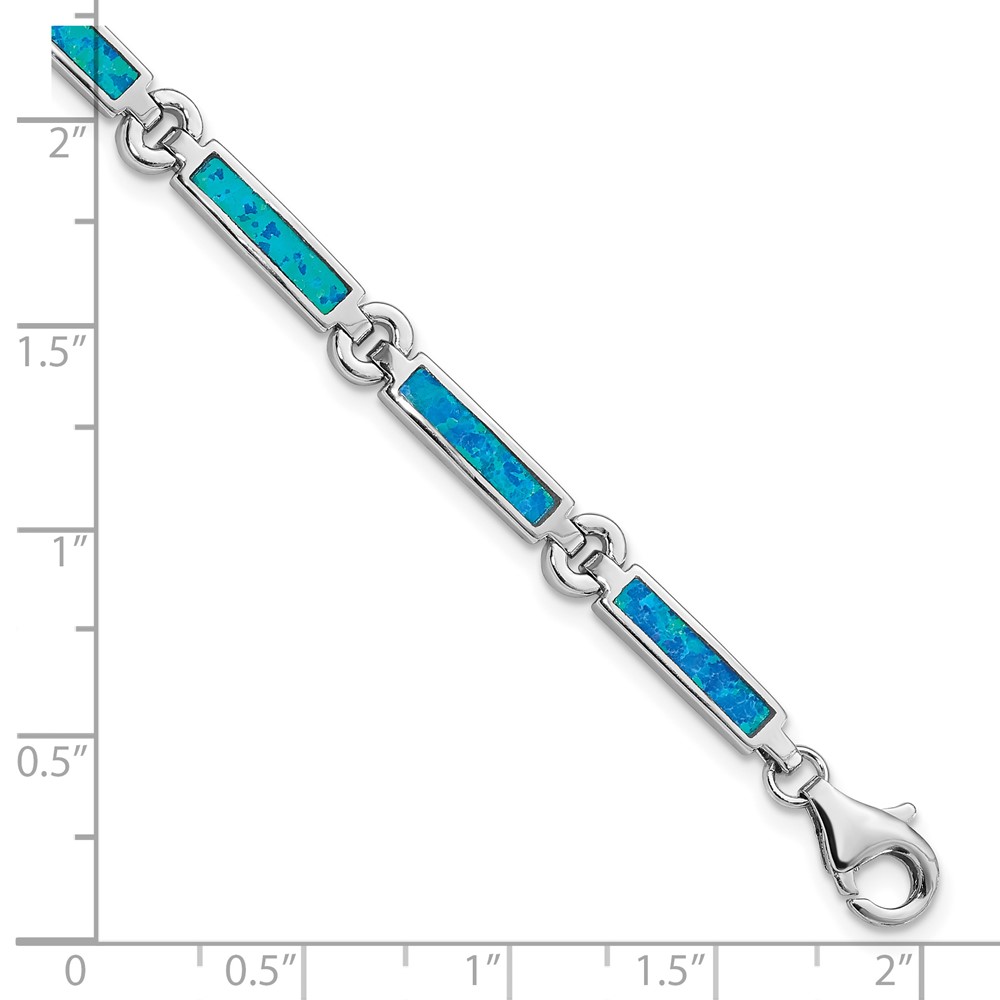 Sterling Silver Rhodium-plated Lab Created Opal Bars 7 inch Bracelet
