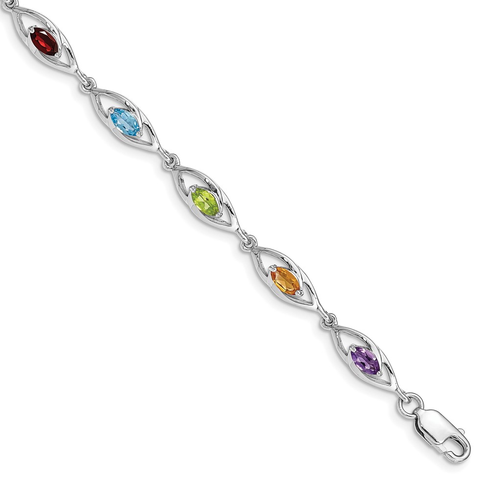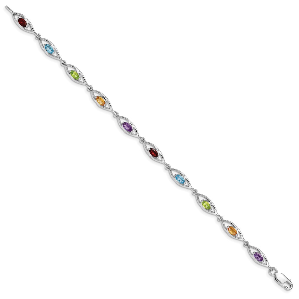 Sterling Silver Rhod-plat Amethyst Topaz Peridot Citrine Garnet Bracelet
