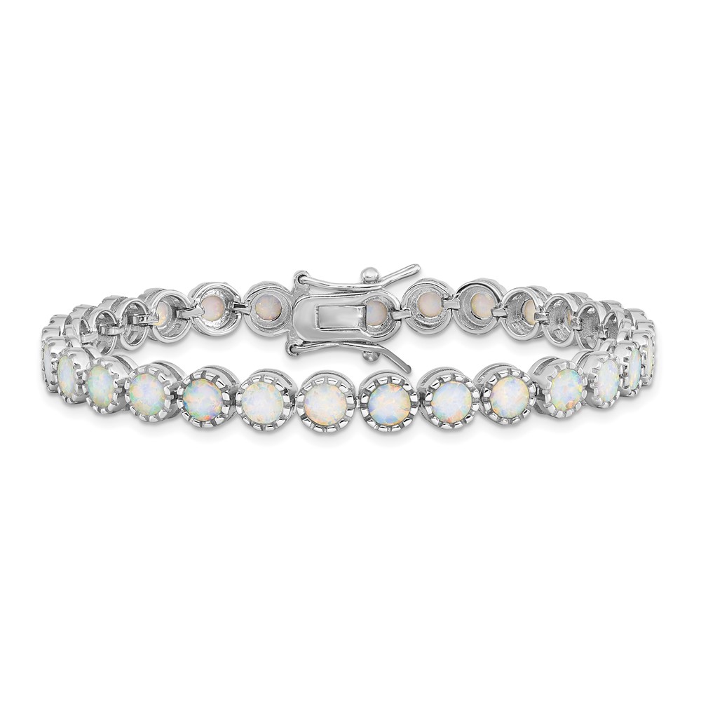 Sterling Silver Rhodium-plated Beaded White Created Opal Inlay Bracelet