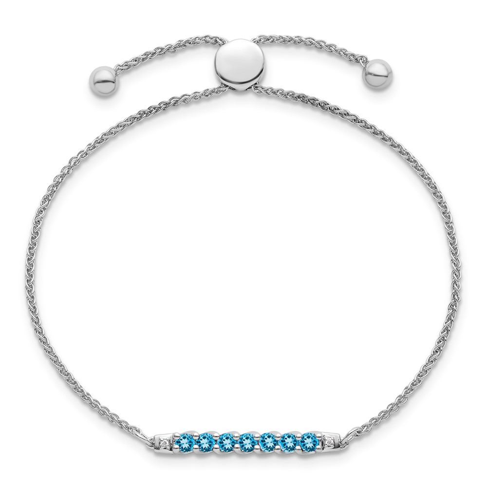 10kw Blue Topaz & Diamond Adjustable SS Bracelet