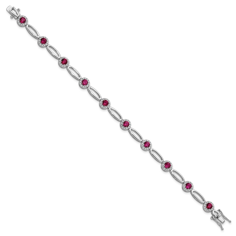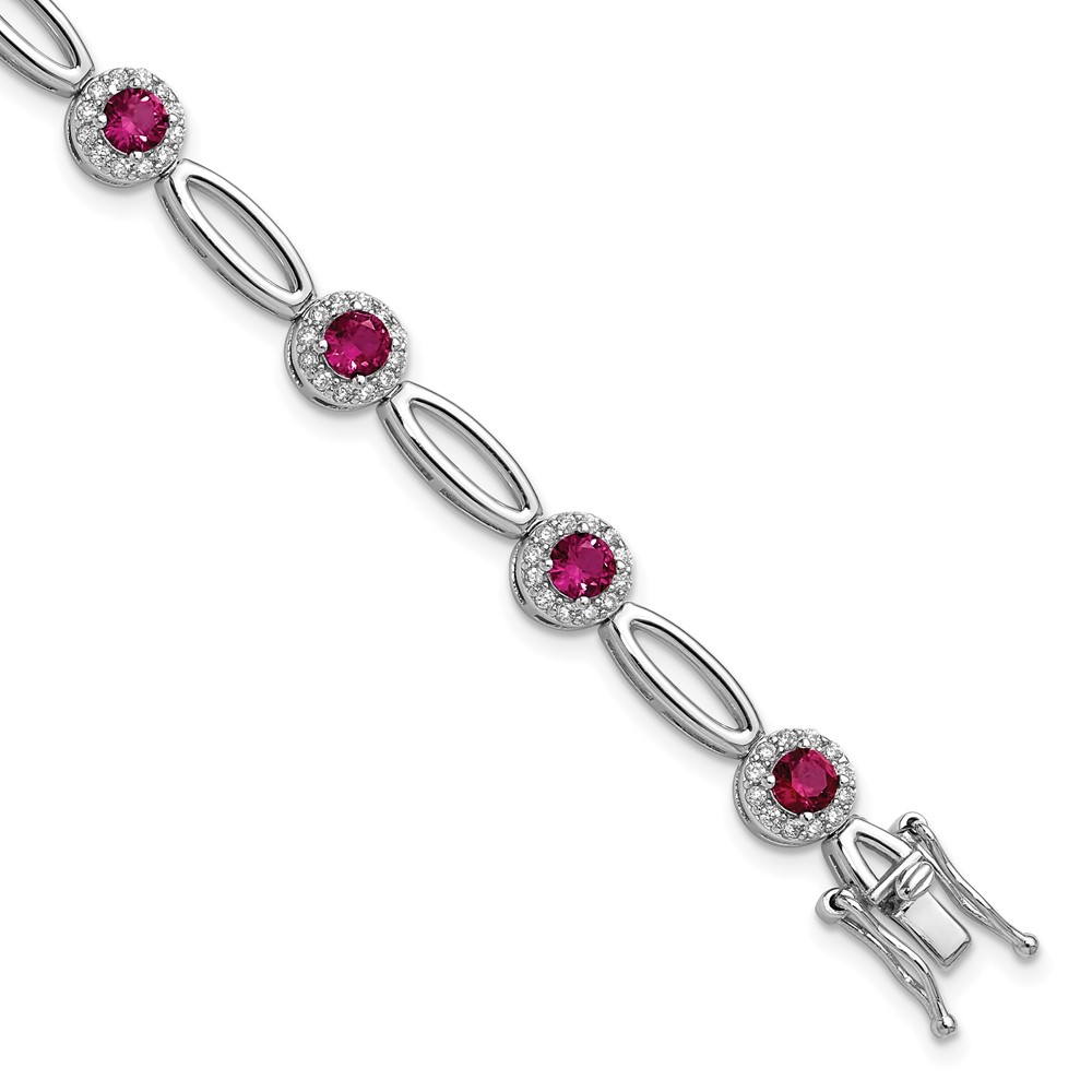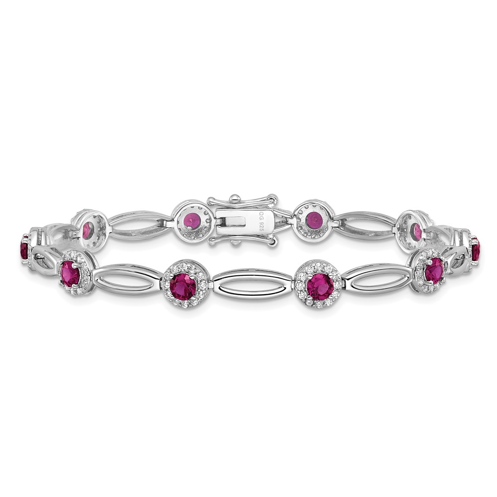 Cheryl M Sterling Silver Rhodium-plated Polished Fancy Lab Created Ruby and CZ Halo Bracelet
