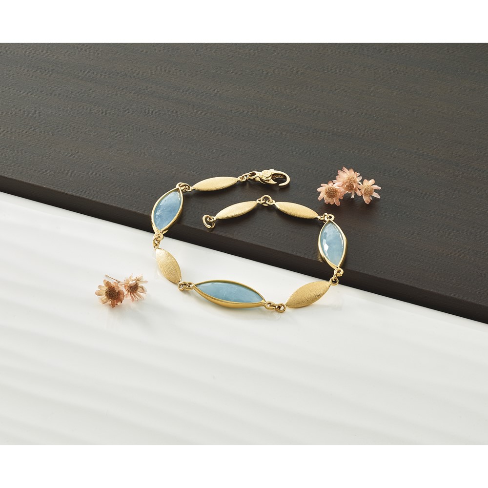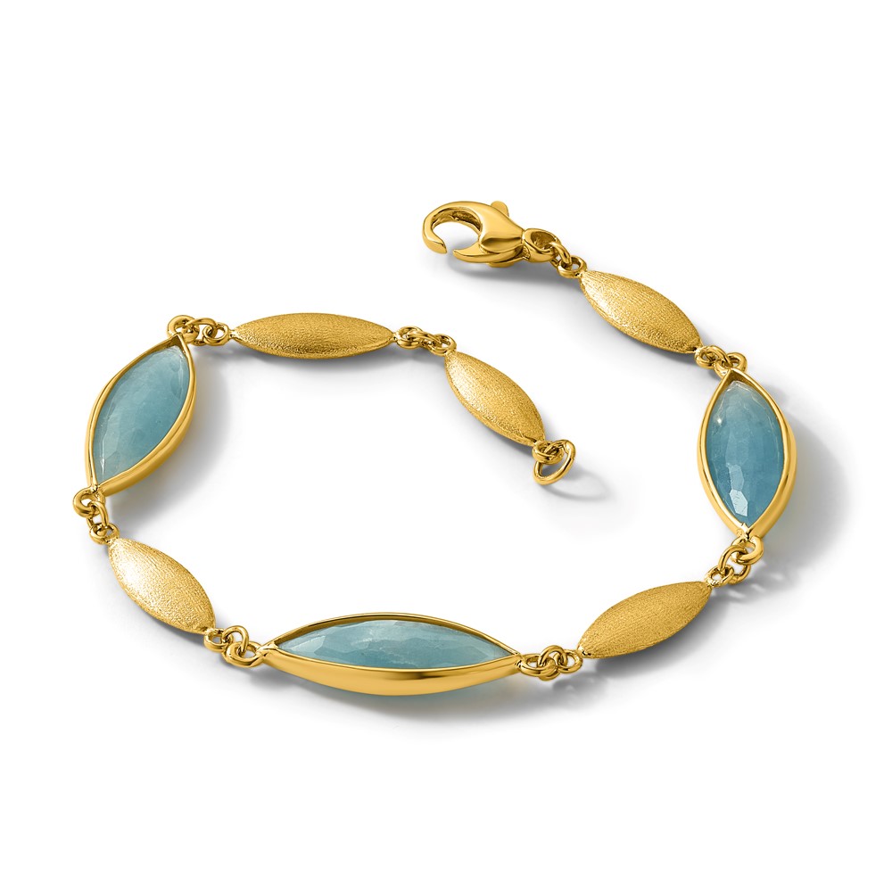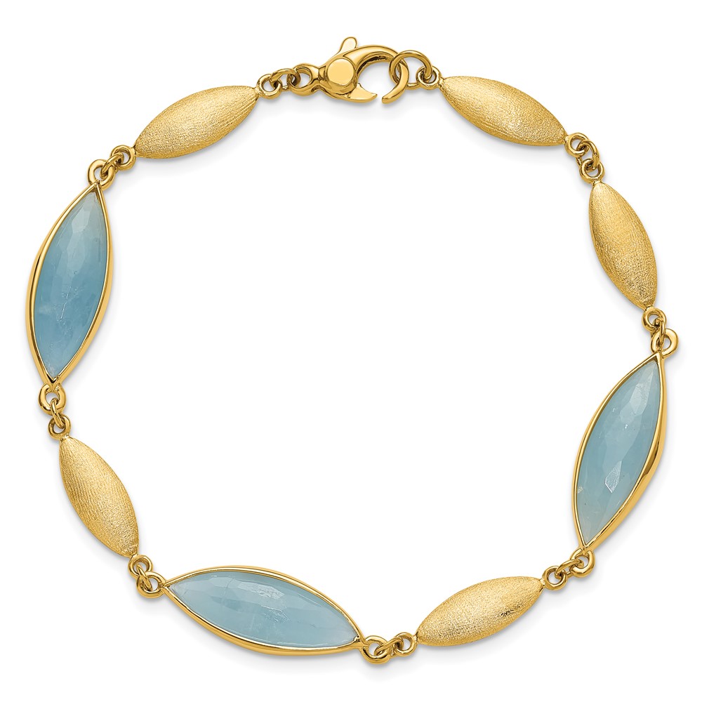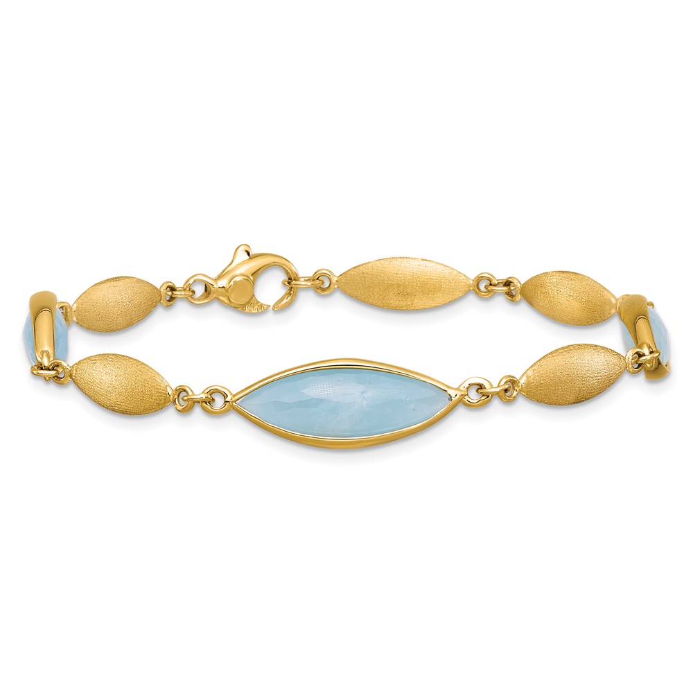 Herco 14K Polished Brushed Aquamarine Navette 7.5 Inch Bracelet