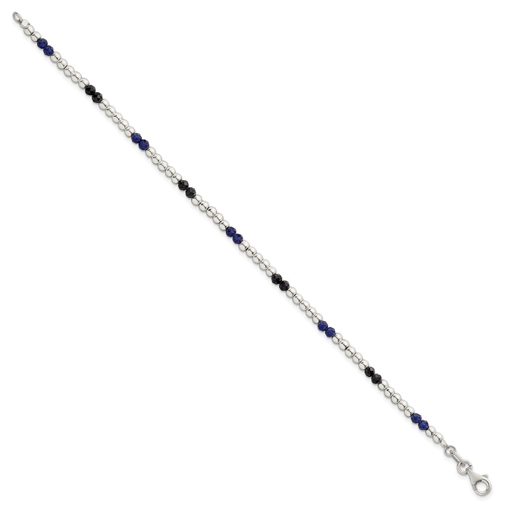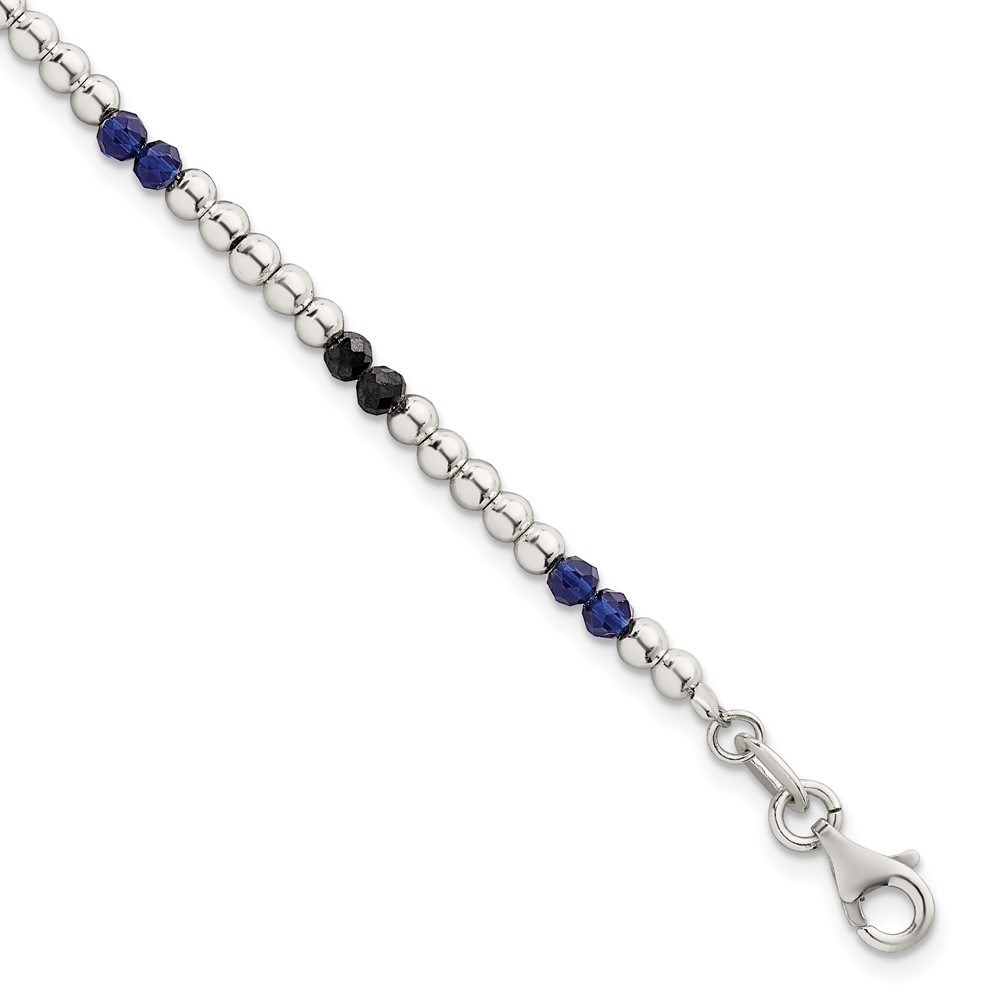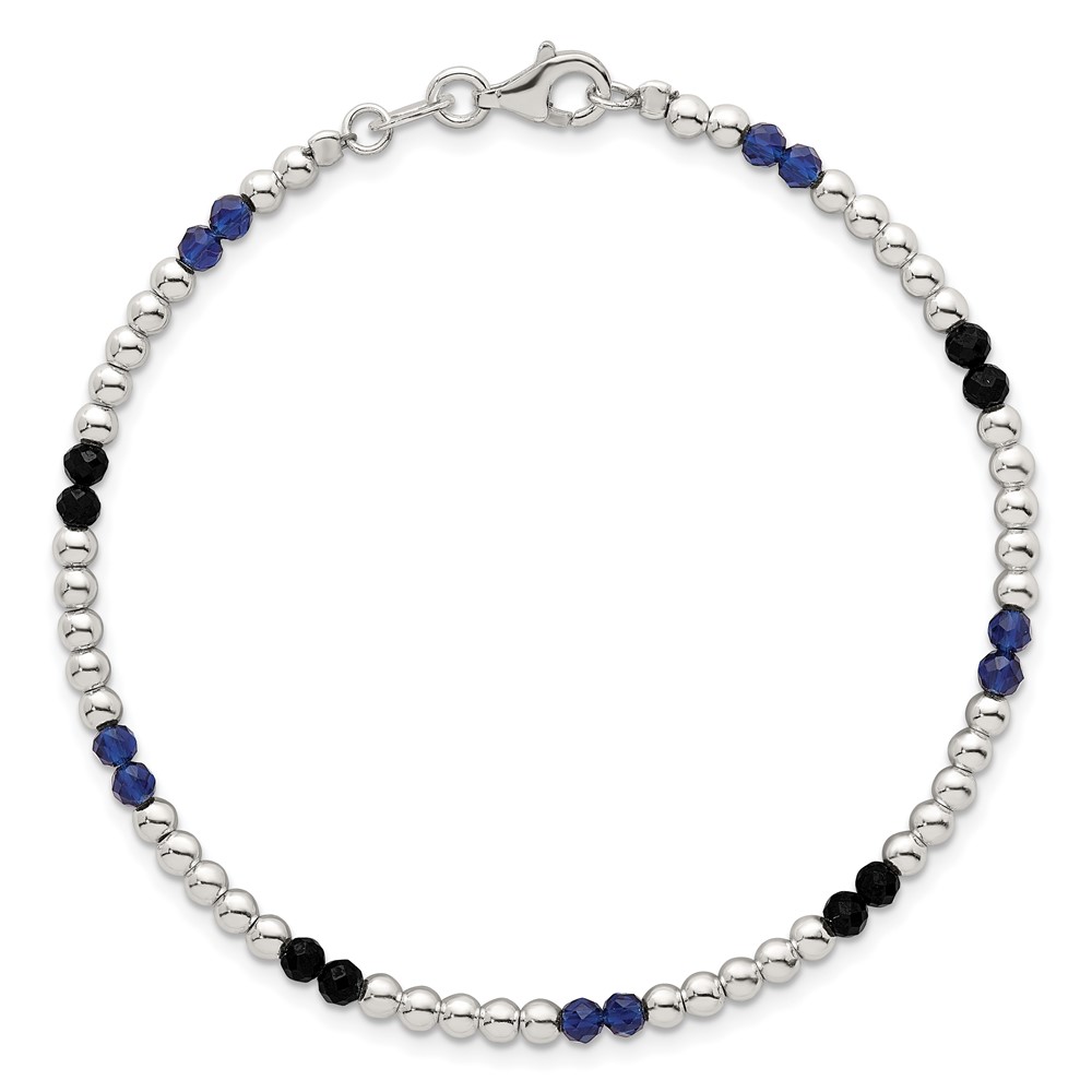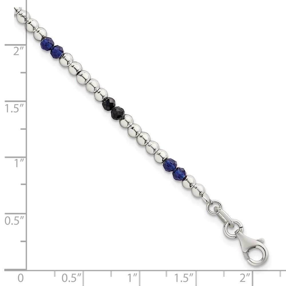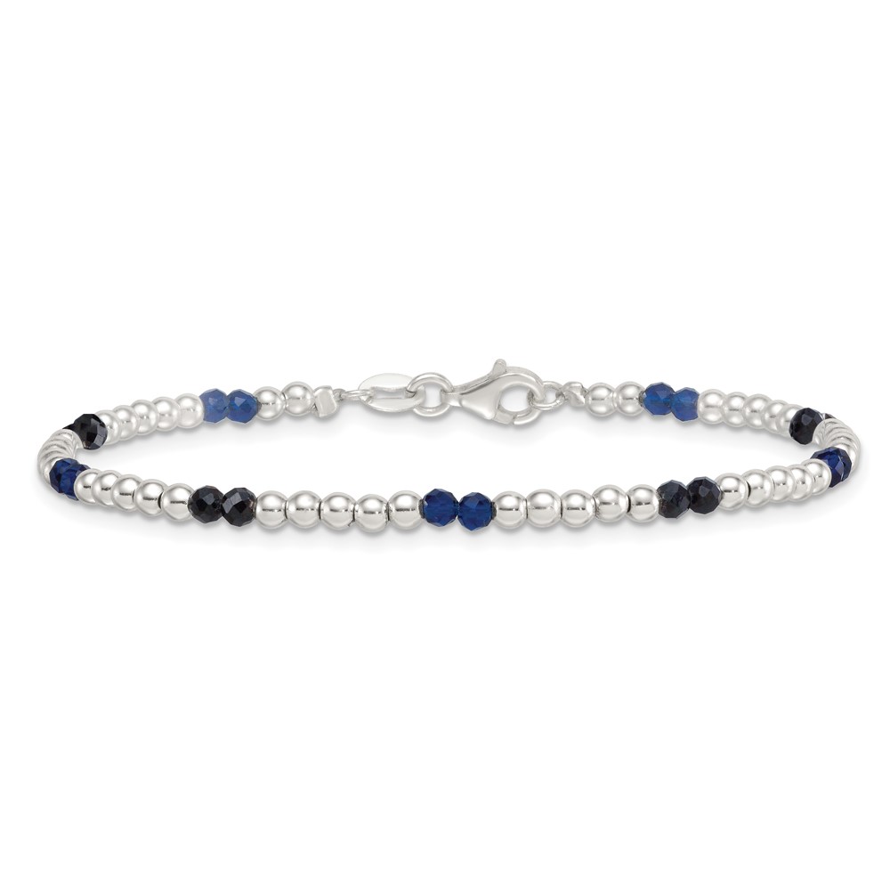 Sterling Silver Polished Blue Agate and Spinel Beaded 7.5 inch Bracelet