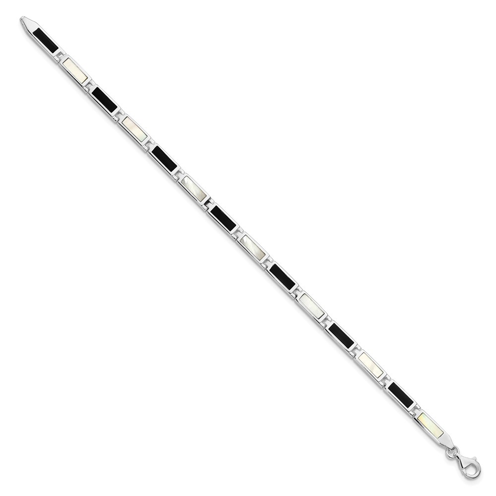 Sterling Silver Rhodium-plated 7in Onyx/Mother Of Pearl Bracelet