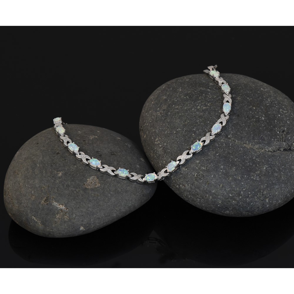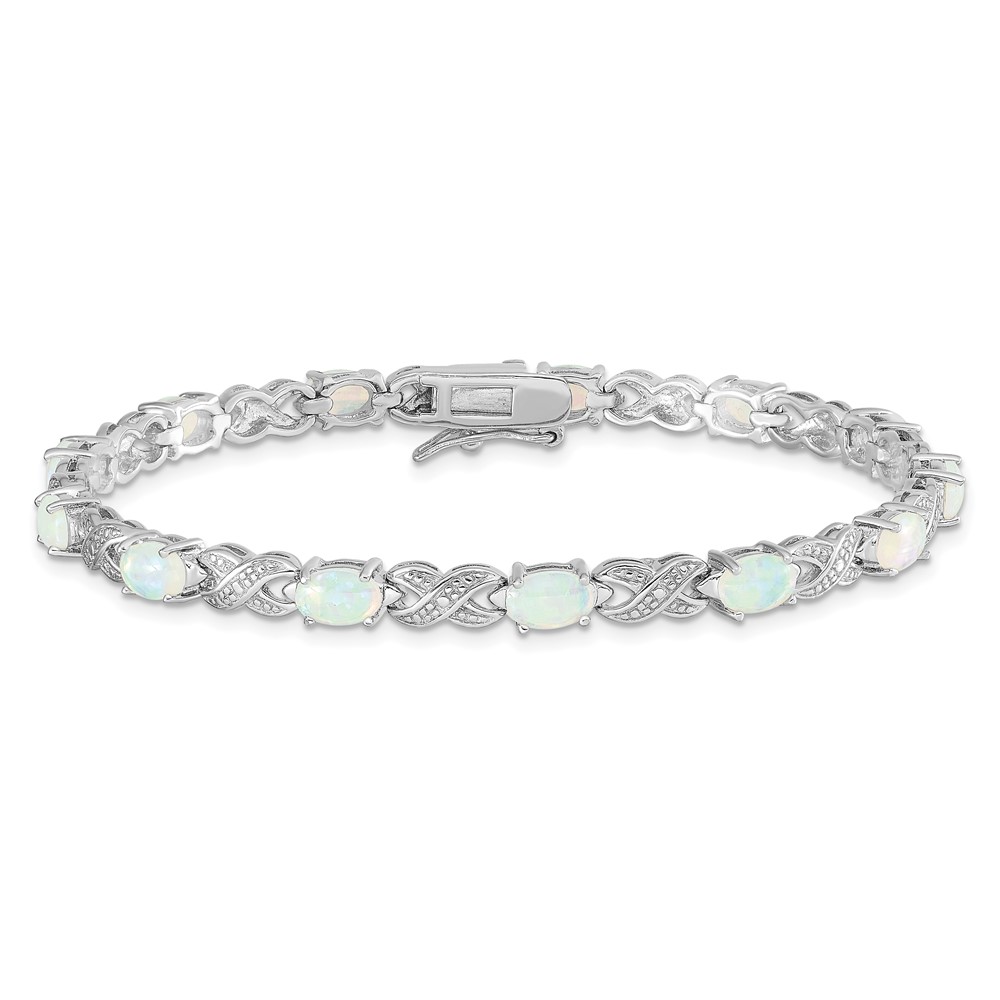 Sterling Silver Rhodium Plated 7.5inch Created Opal XO Bracelet