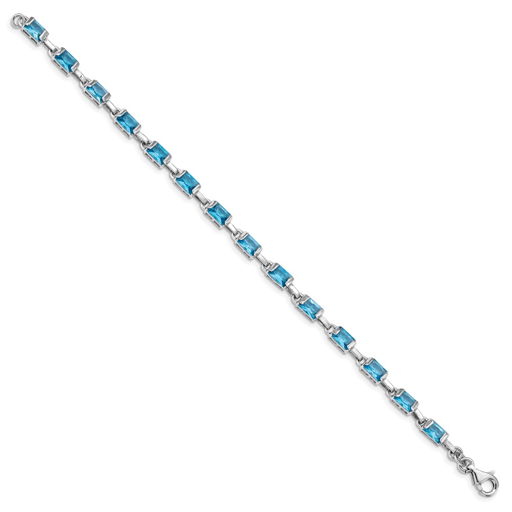 Sterling Silver Rhodium-plated Rectangular Blue Topaz Bracelet