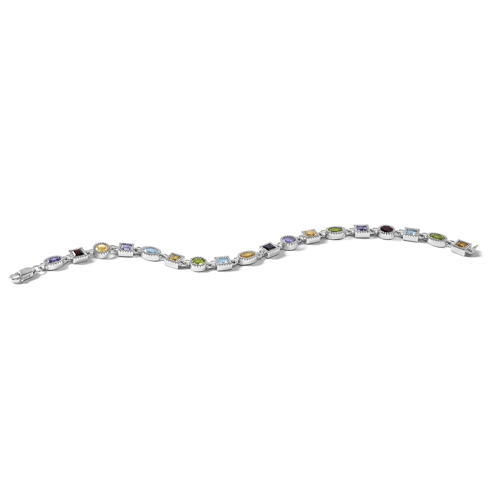 Sterling Silver 7inch Rhod Plated Rainbow Multi-gemstone Bracelet