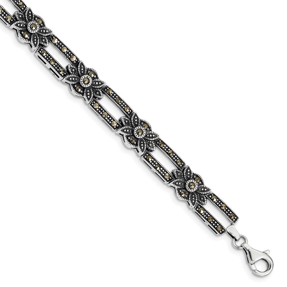 Sterling Silver Rhodium-plated Marcasite Bracelet