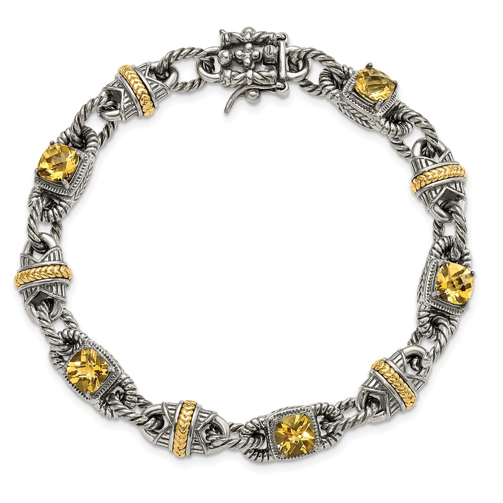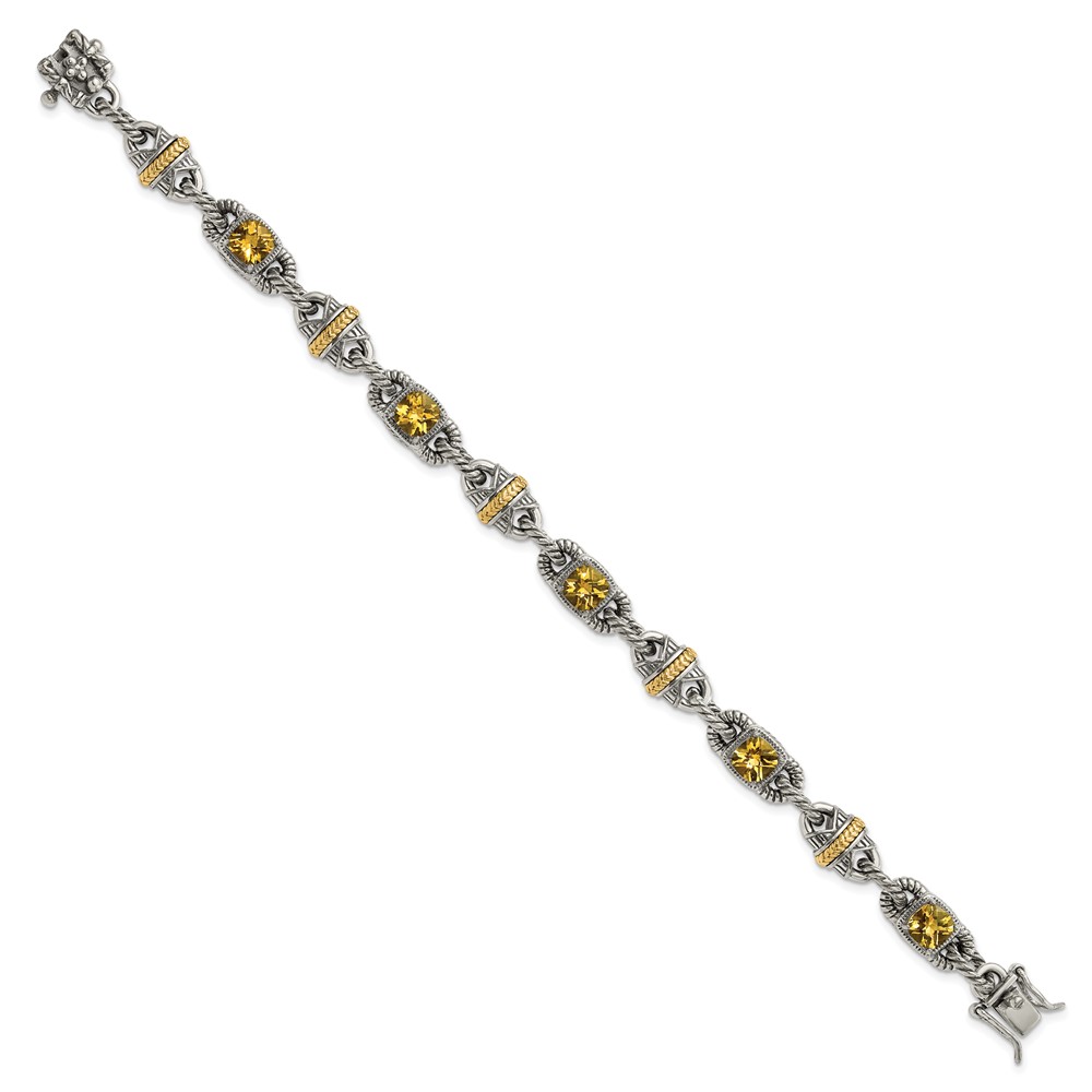 Sterling Silver w/14ky Accent Polished & Antiqued Citrine Bracelet