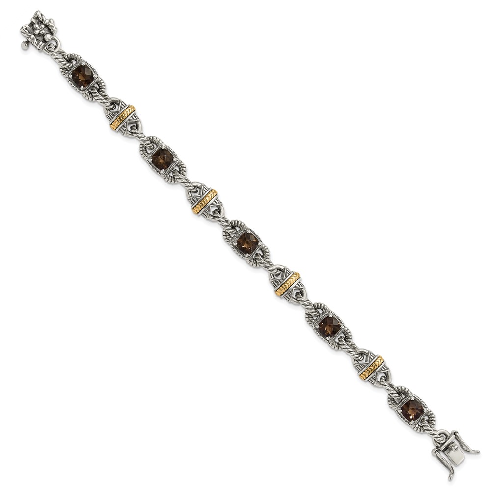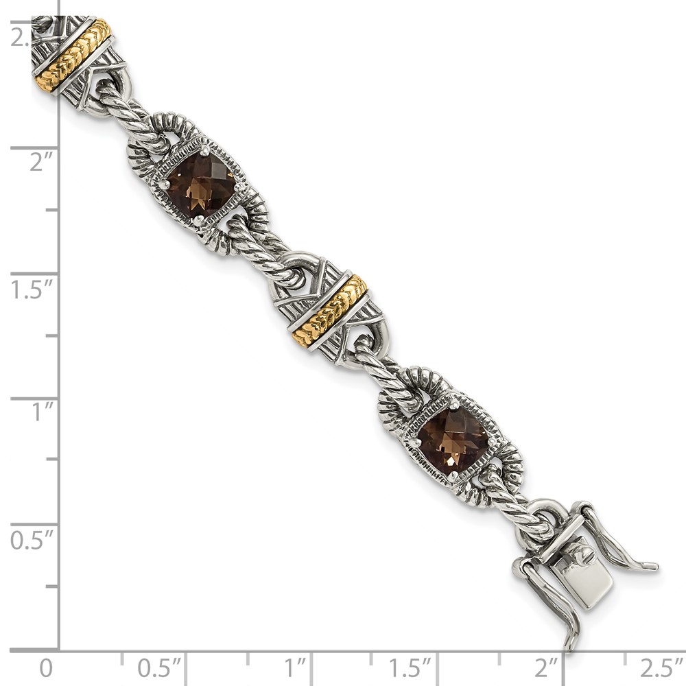 Sterling Silver w/14ky Accent Polished & Antiqued Smoky Quartz Bracelet