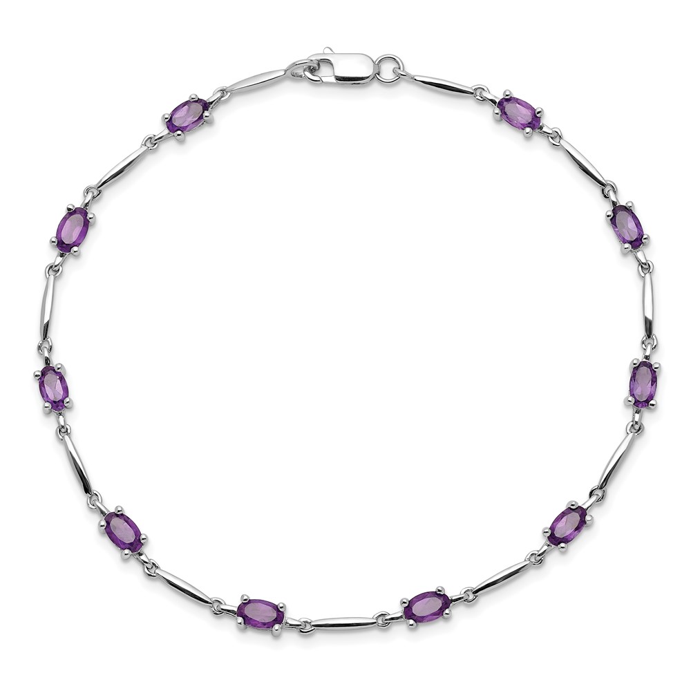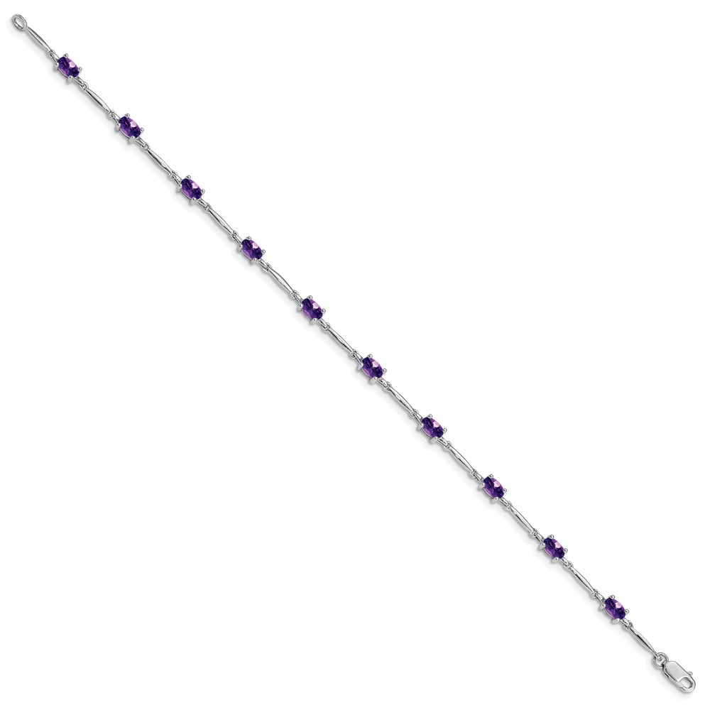 14k White Gold Polished Complete Diamond and Round Citrine 7 inch Eye Bracelet with 0.5 inch Extender