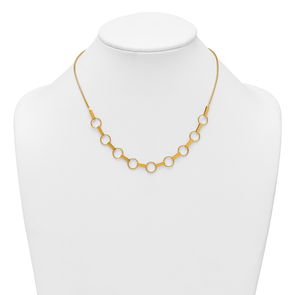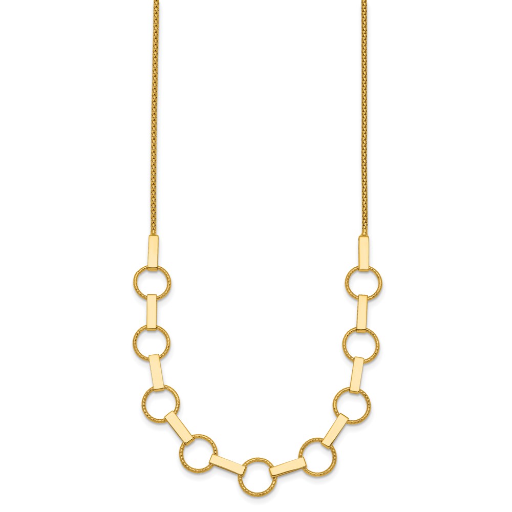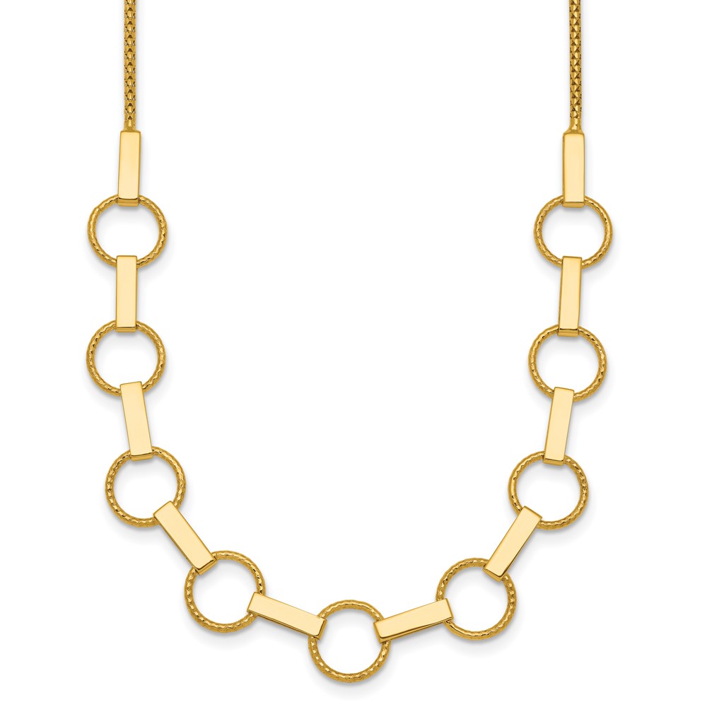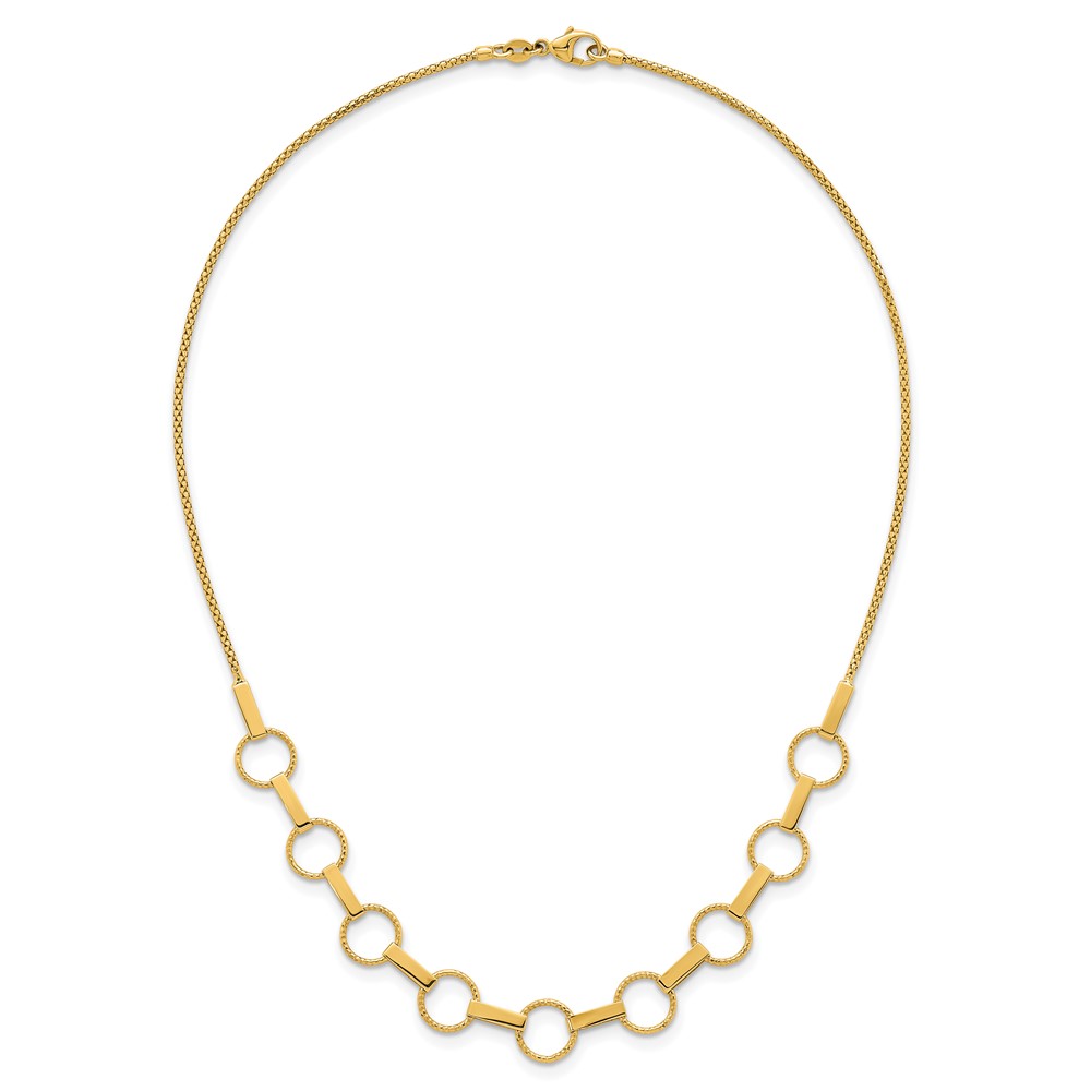 14K Polished and Textured Circles and Bars 17.5 inch Necklace