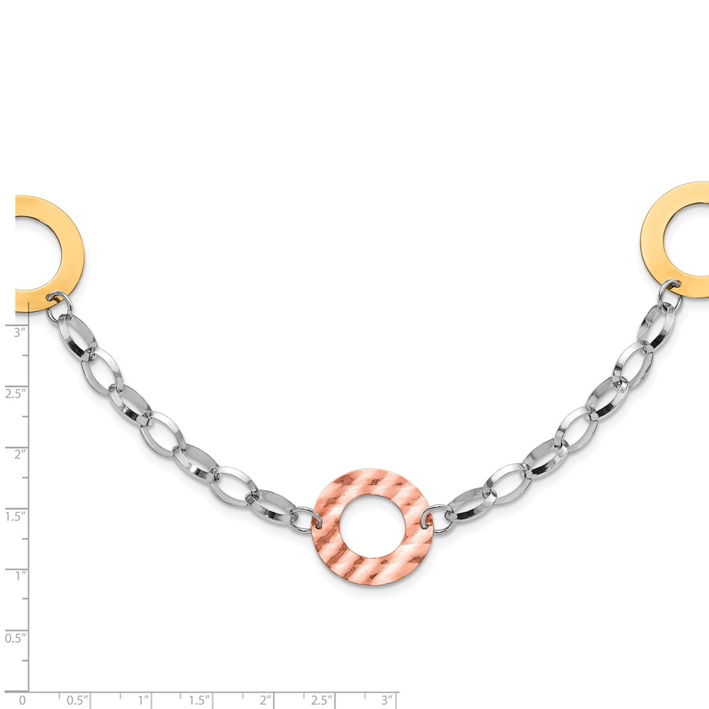 Sterling Silver Gold-tone & Rose-tone Rhodium Circles Necklace