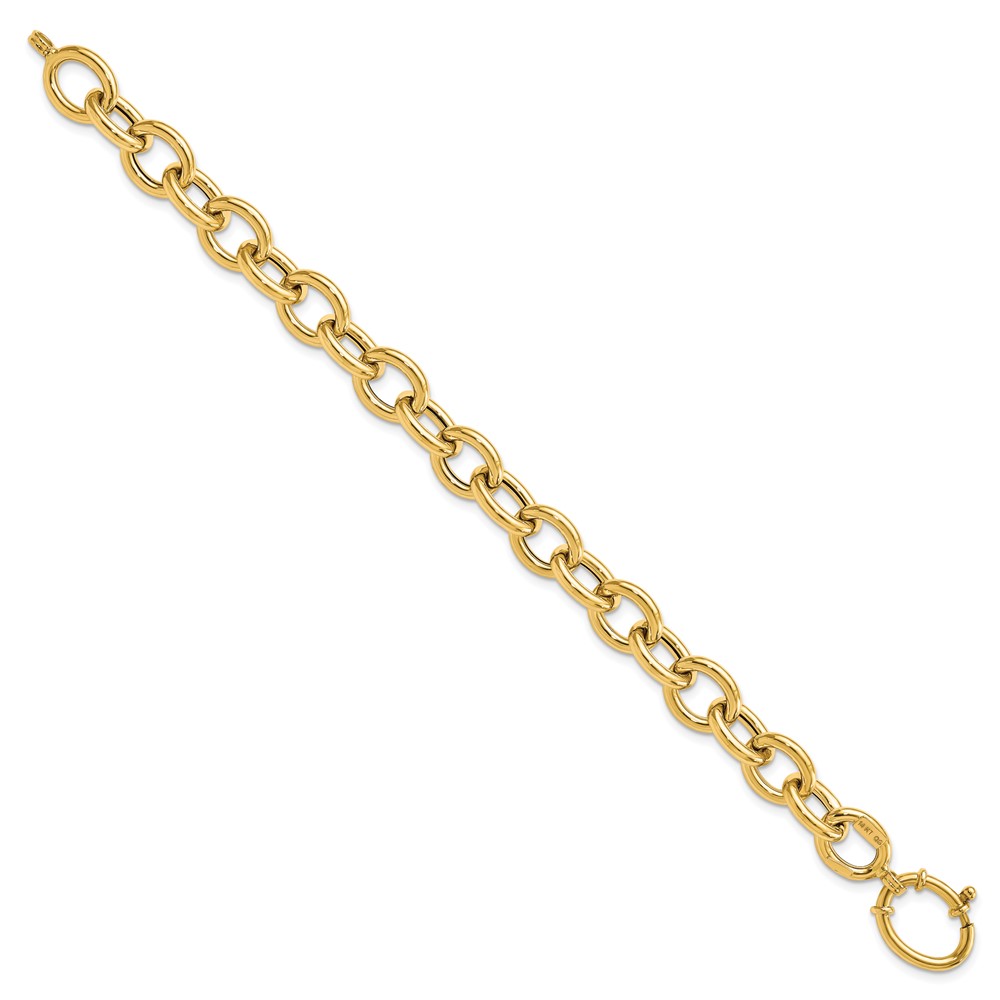 14k Polished 11mm Fancy Oval Cable Link 7.5 inch Bracelet