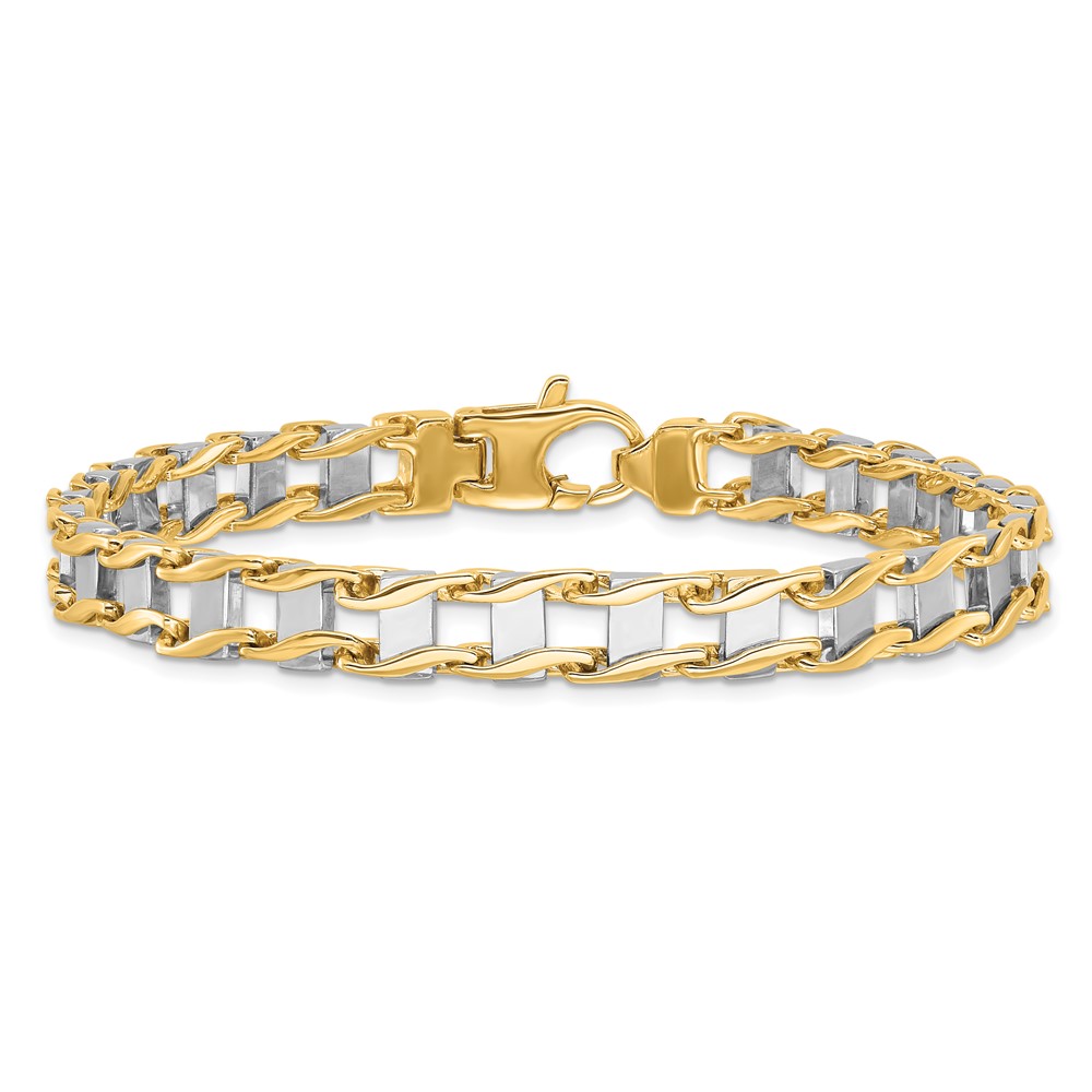 14k Two-tone 7.5mm Hand-polished Fancy Link 8.5 inch Bracelet