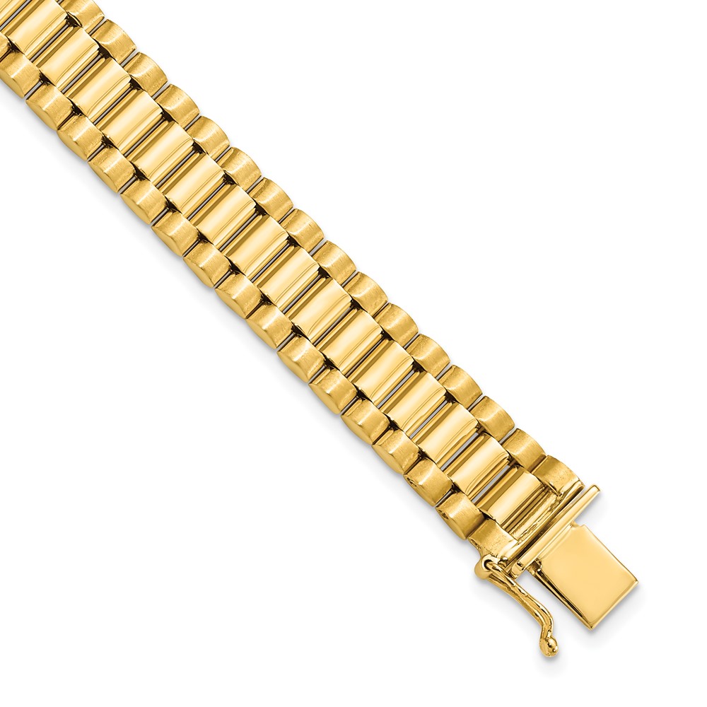 14k Polished and Satin 10mm Mens Fancy Link 8 inch Bracelet