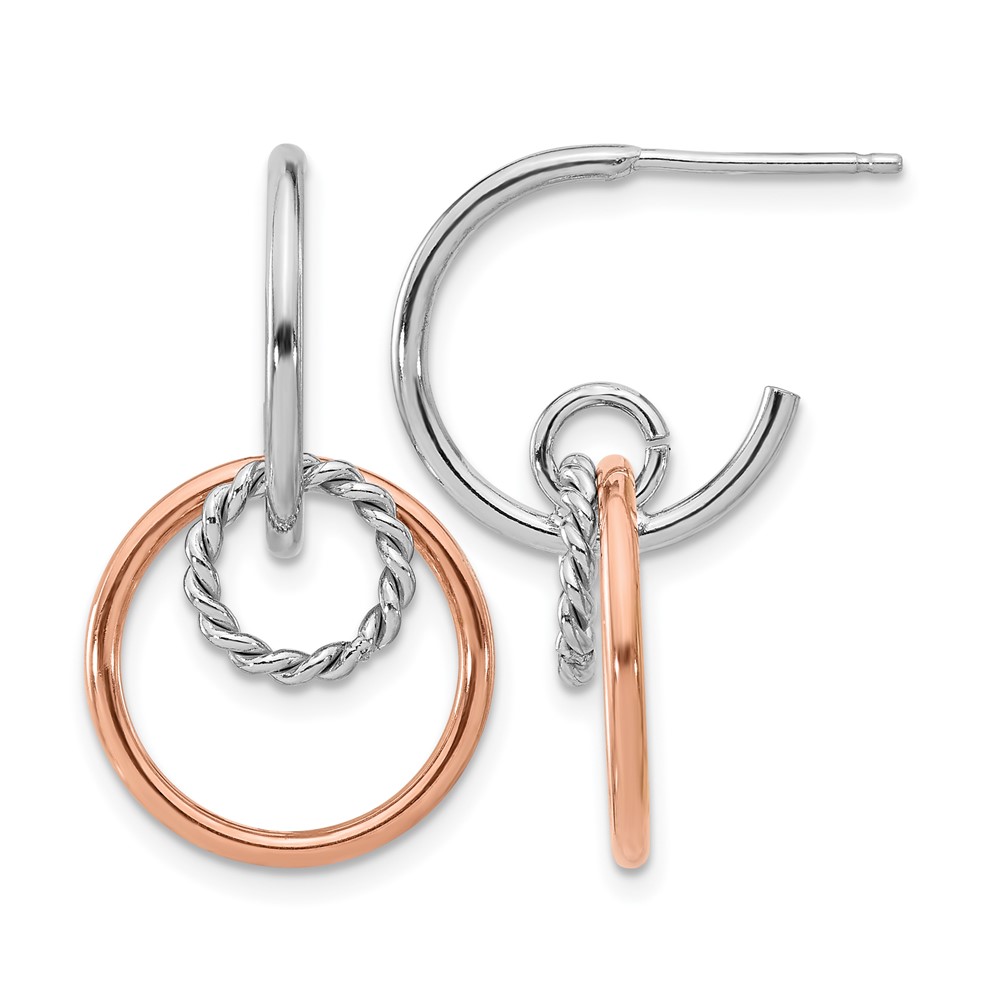 Leslie's Sterling Silver RH-plated with Rose-tone Circles Post Dangle Earri
